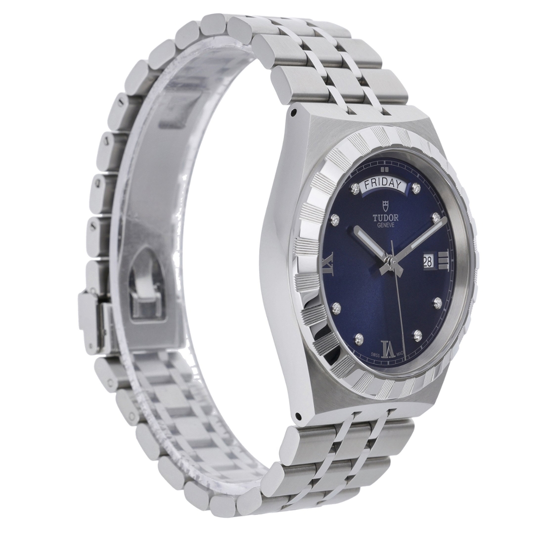 A Tudor Royal Watch, Stainless Steel with a Notched Bezel on a Blue Dial with Diamond Numerals