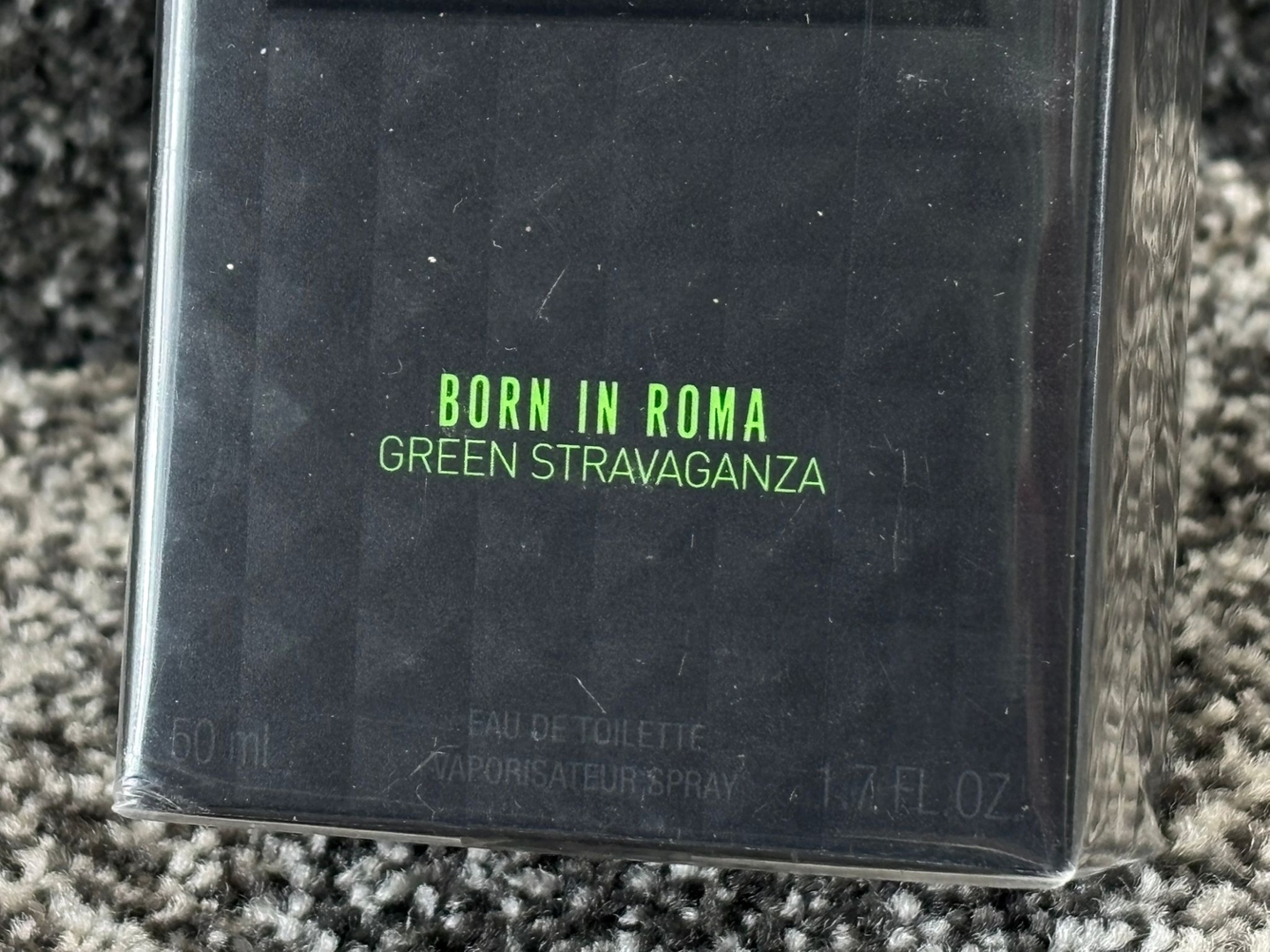 A 50ml bottle of Valentino Uomo Born In Roma Green Stravaganza Eau De Toilette, presented in its original presentation box and offering a bold, contemporary addition to the Born In Roma fragrance line. Inspired by the vibrant energy and modern spirit of Rome, this edition delivers a fresh yet expressive interpretation of modern masculine style.