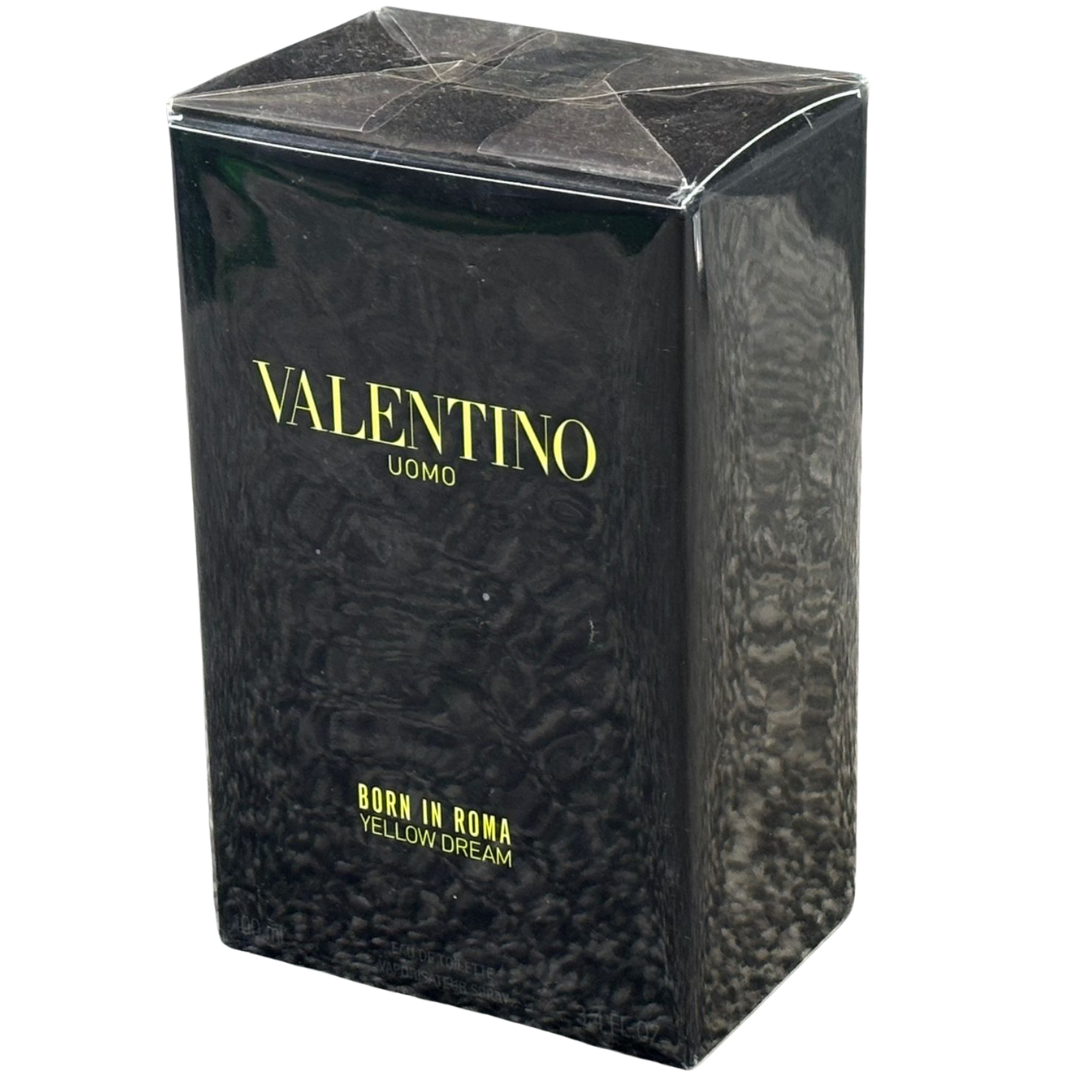 A 100ml bottle of Valentino Uomo Born In Roma Yellow Dream Eau De Toilette, presented in its original presentation box and offering a vibrant, contemporary take on the Born In Roma fragrance line. Inspired by the energy and warmth of Rome, this edition reflects modern masculinity with a fresh, confident and stylish character.