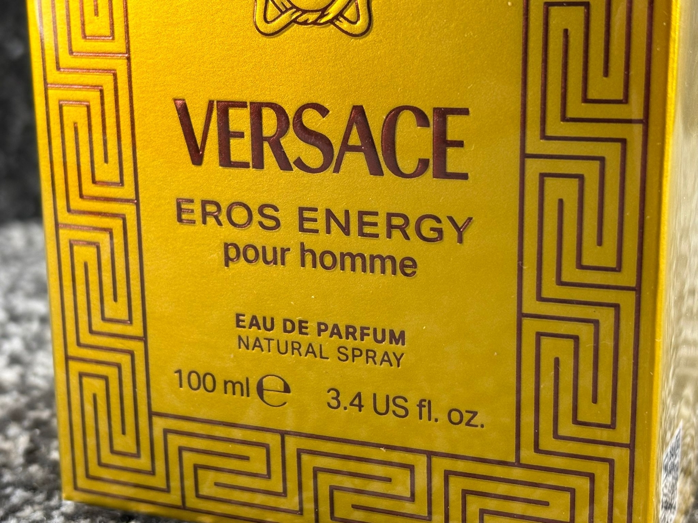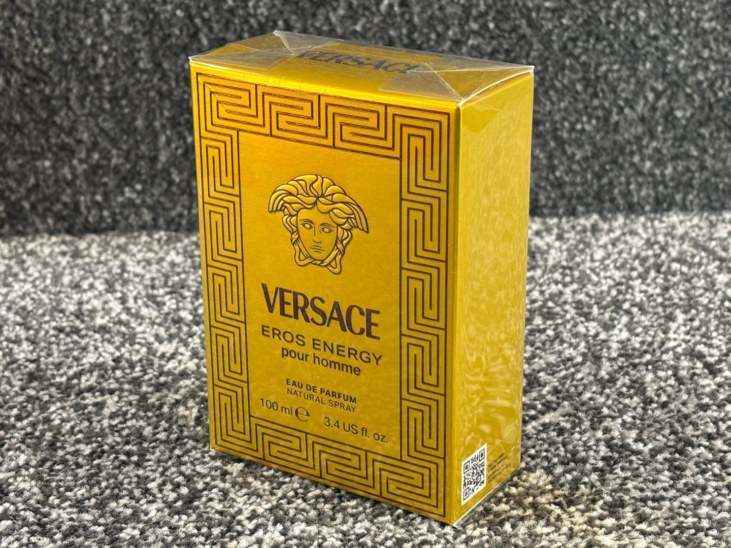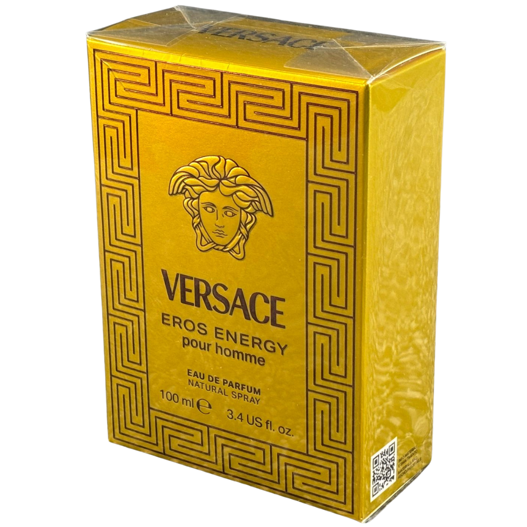 A bottle of Versace - Eros Energy Pour Homme Eau De Parfum in a presentation box.