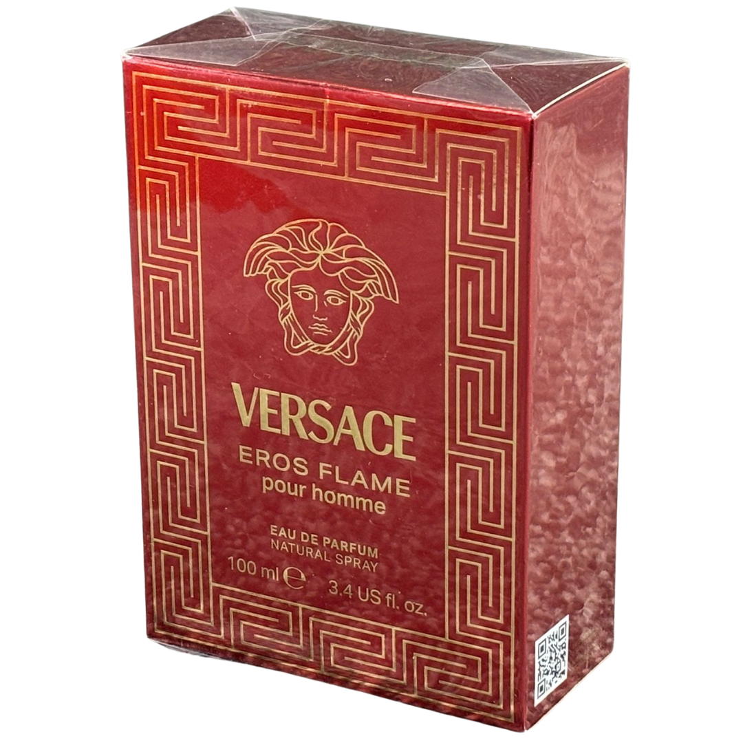 A bottle of Versace - Eros Flame Pour Homme Eau De Parfum in a presentation box.