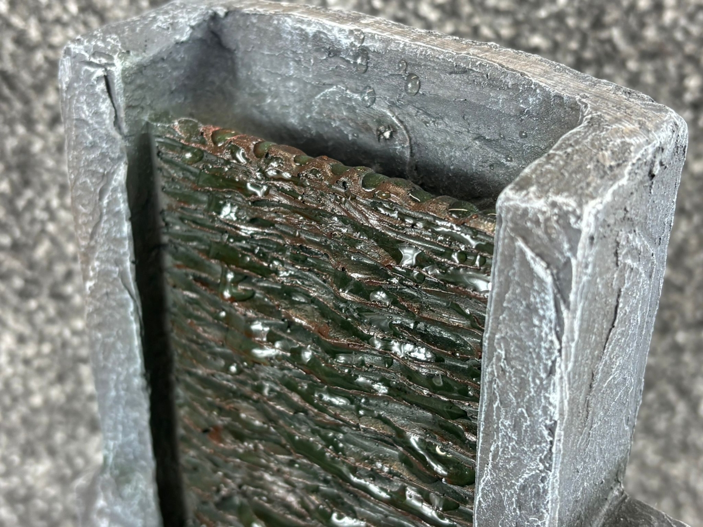 A Vertical Stream Water Fountain. Suitable for indoor and outdoor use. Approx 24cm height, 18cm width, 18cm depth.