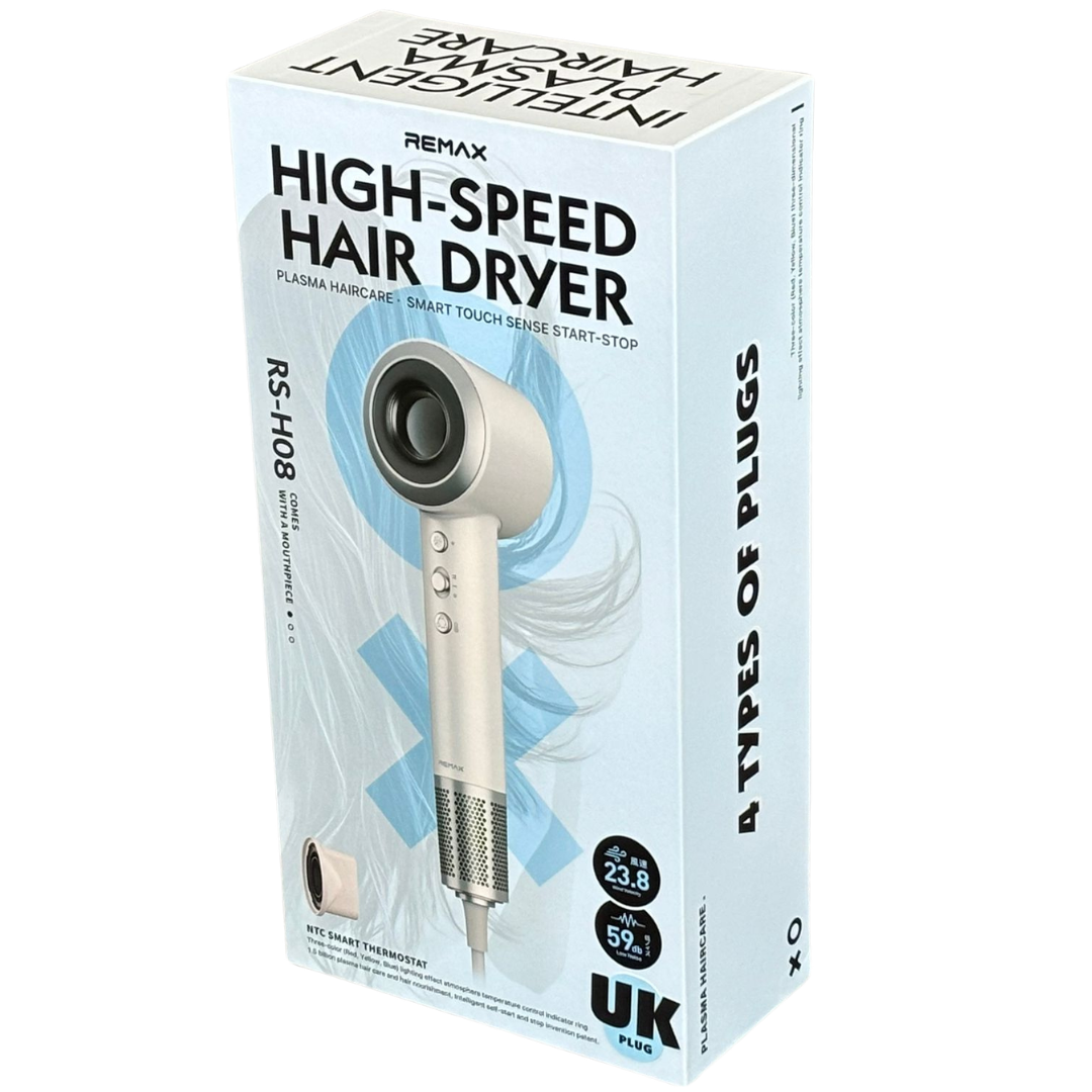 - > White Plasma Hair Dryer with Smart Temperature Control