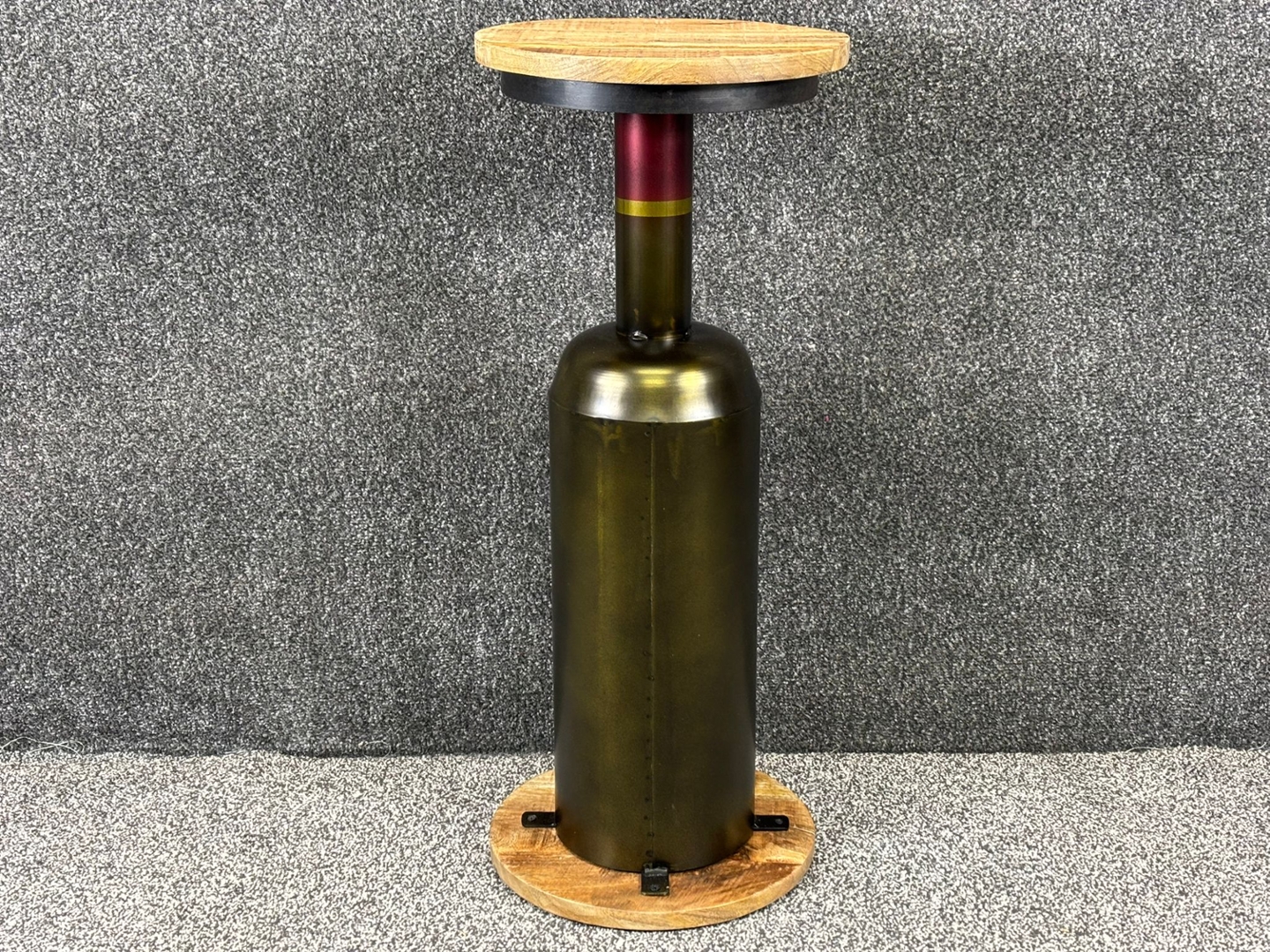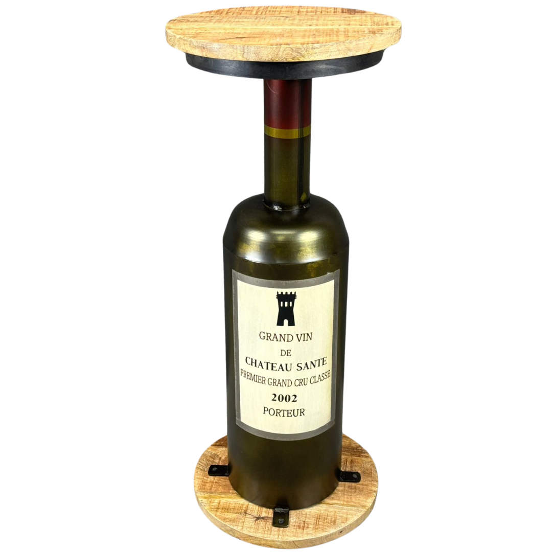 Wine Bottle Style Side Table with a Wooden Top