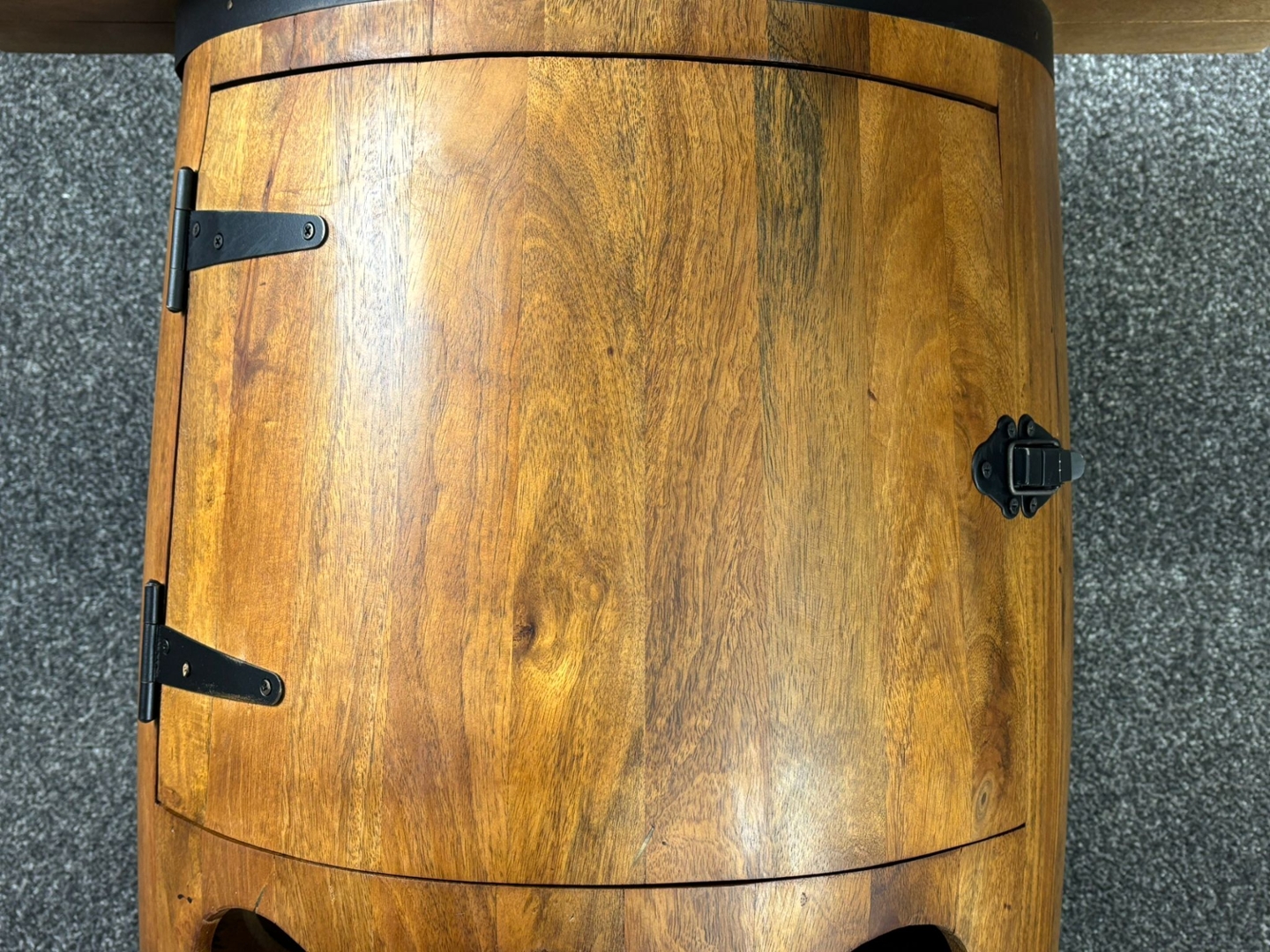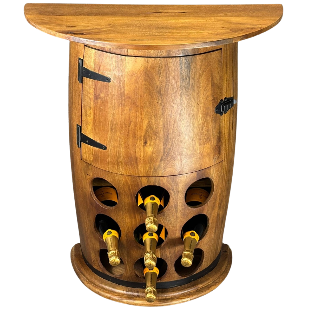 wood. The integrated bottle rack on the front provides an