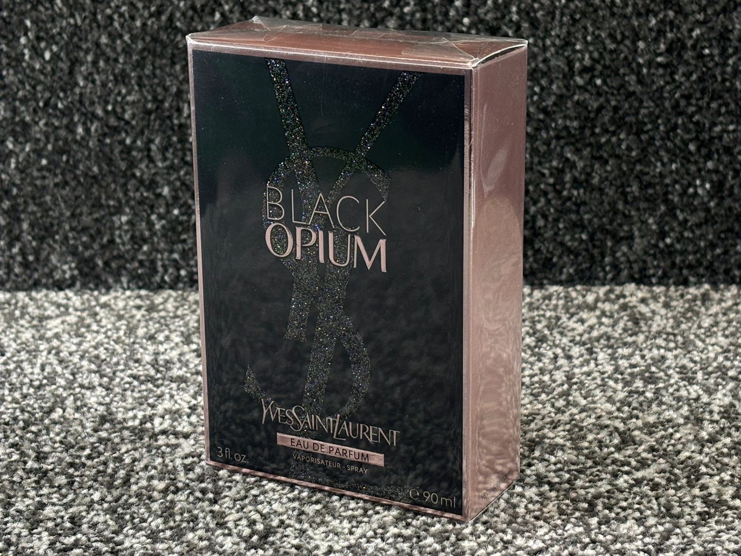 A 90ml bottle of YSL Opium Eau De Parfum, presented in its original presentation box and showcasing one of Yves Saint Laurent’s most iconic and enduring fragrances. Renowned for its bold identity and unmistakable character, Opium has long been associated with confidence, sensuality and timeless appeal within luxury perfumery.