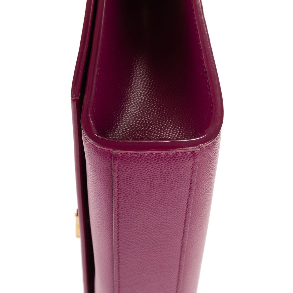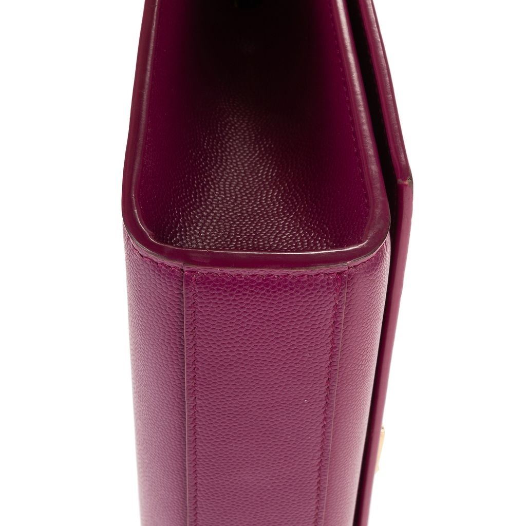 A vintage YSL purple calf leather Kate Tassel bag with a certificate of authenticity, Approximately 15cm height, 24cm width.