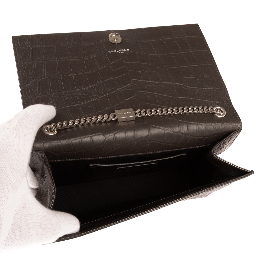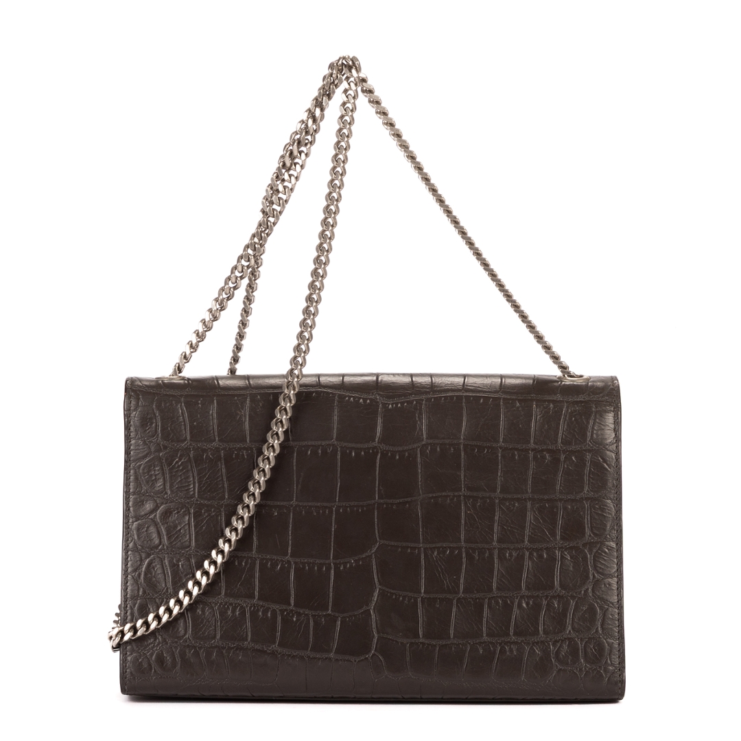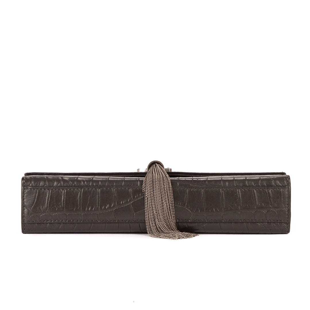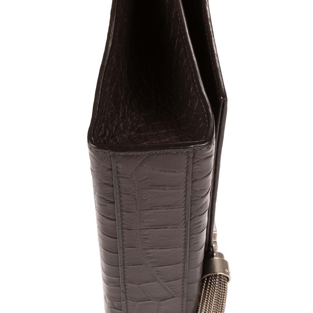 A vintage YSL dark grey calf leather Kate Tassel bag with a certificate of authenticity, Approximately 15cm height, 24cm width.