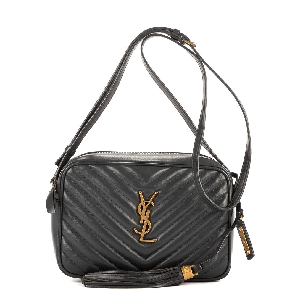 A vintage YSL dark grey calf leather Lou Camera bag with a certificate of authenticity, Approximately 17cm height, 22cm width.