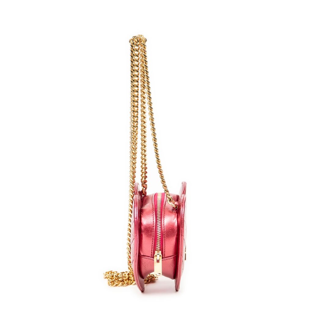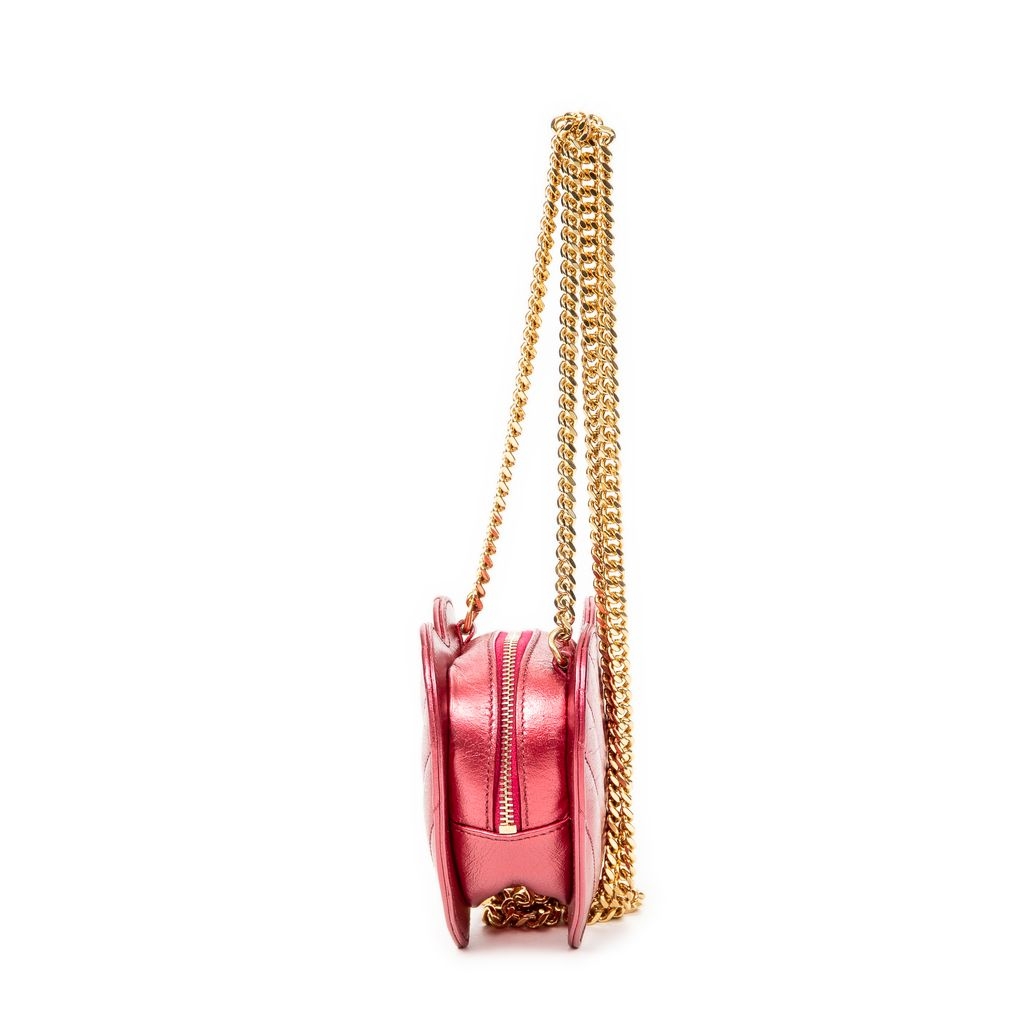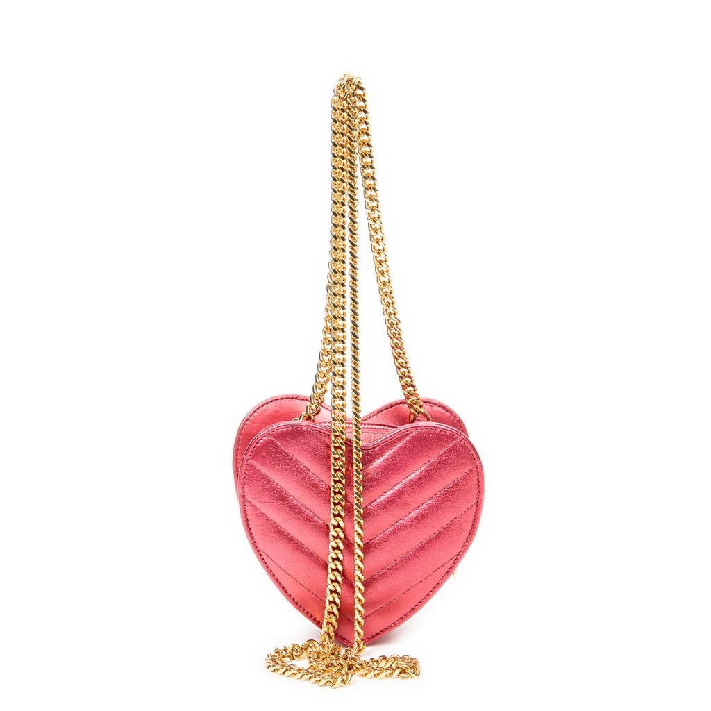 A vintage YSL metallic pink calf leather Love Heart Chain Bag with a certificate of authenticity, Approximately 11cm height, 10cm width.
