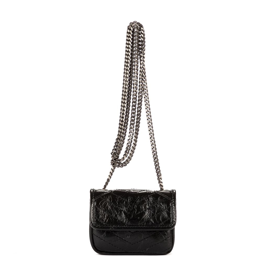 A vintage YSL black calf leather Micro Niki bag with a certificate of authenticity, Approximately 6cm height, 8cm width.