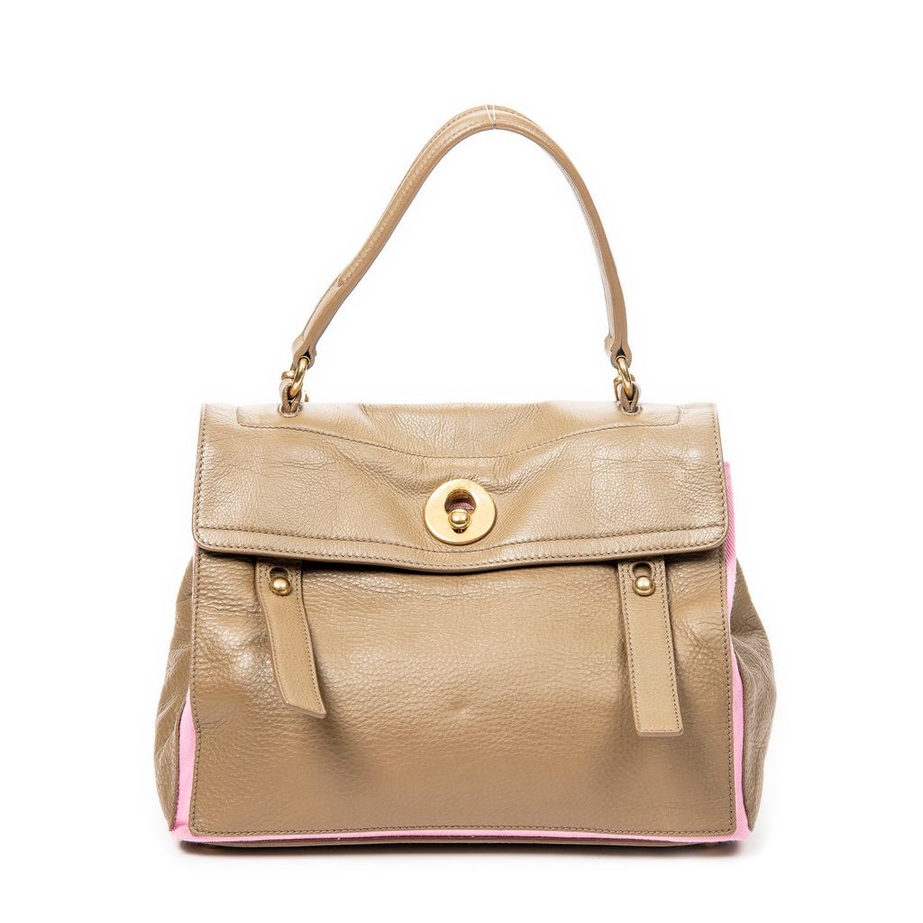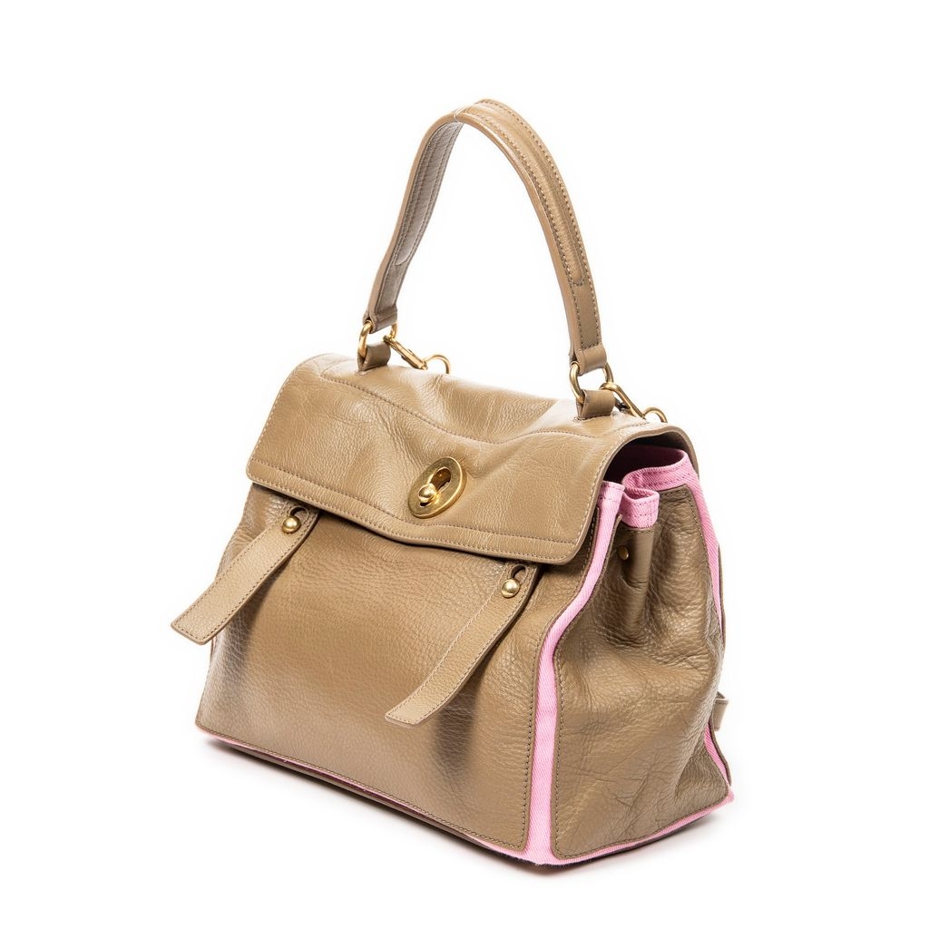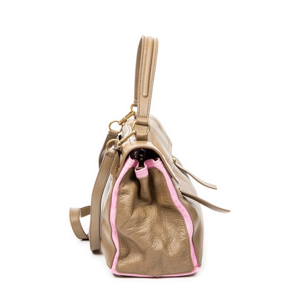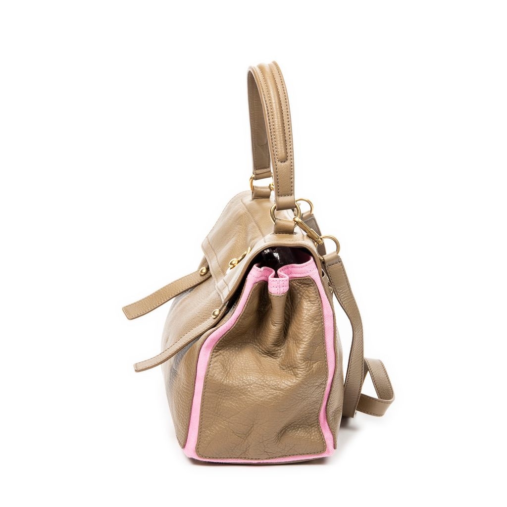 A vintage YSL brown/pink calf leather Muse Two bag with a certificate of authenticity, Approximately 22cm height, 32cm width.