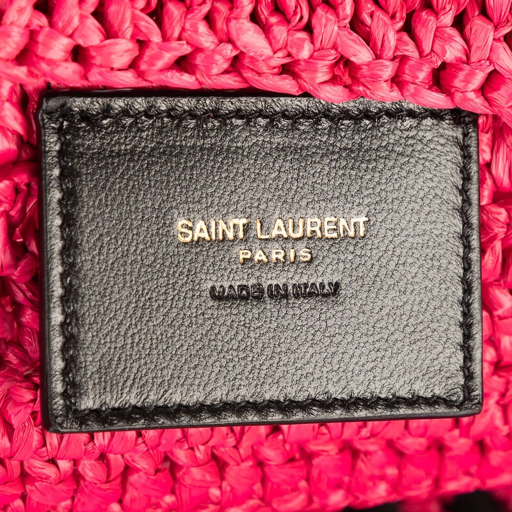 A vintage YSL pink woven raffia Rive Gauche Raffia Tote bag with a certificate of authenticity, Approximately 33cm height, 37cm width.