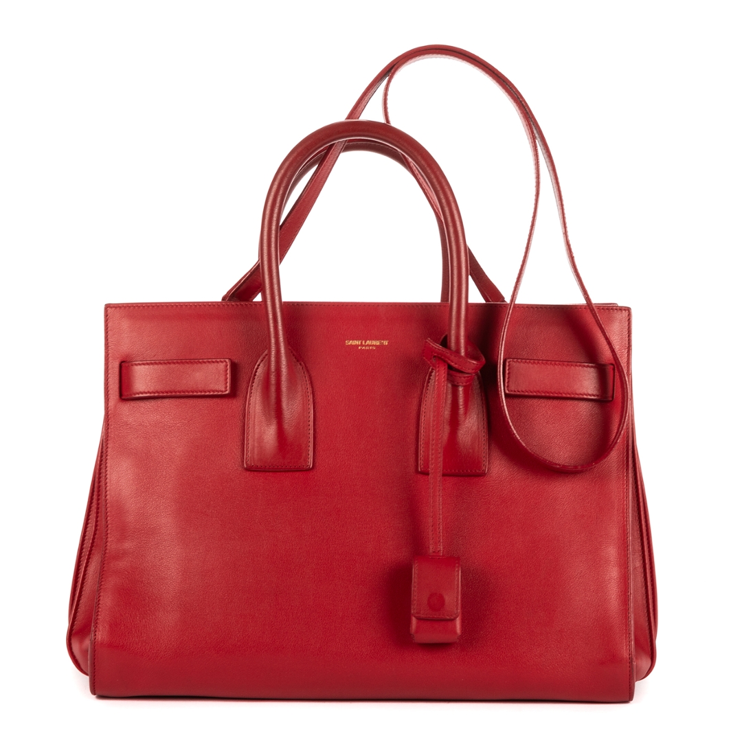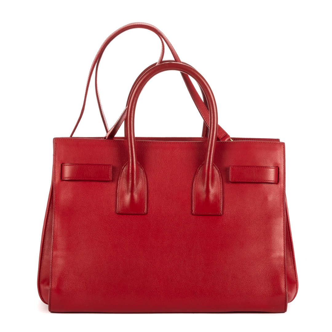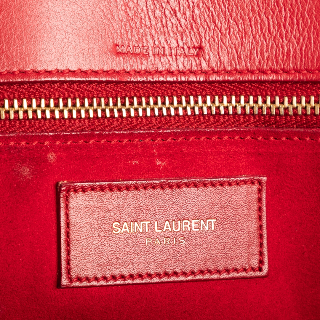 A vintage YSL red calf leather Sac De Jour Nano bag with a certificate of authenticity, Approximately 24cm height, 31cm width.