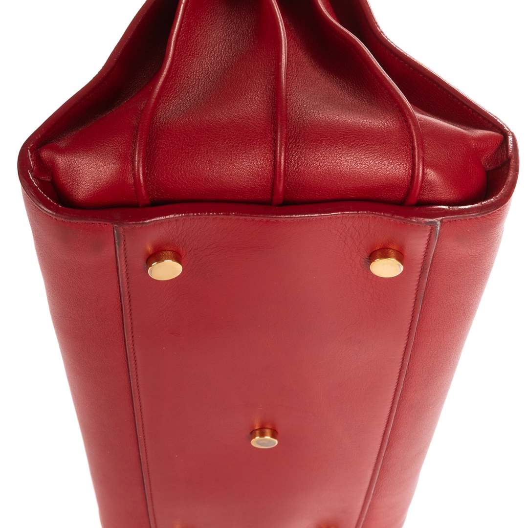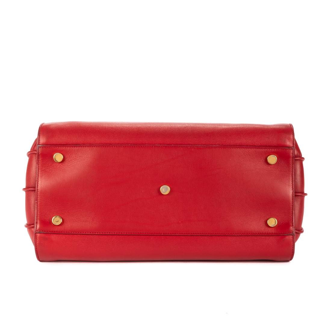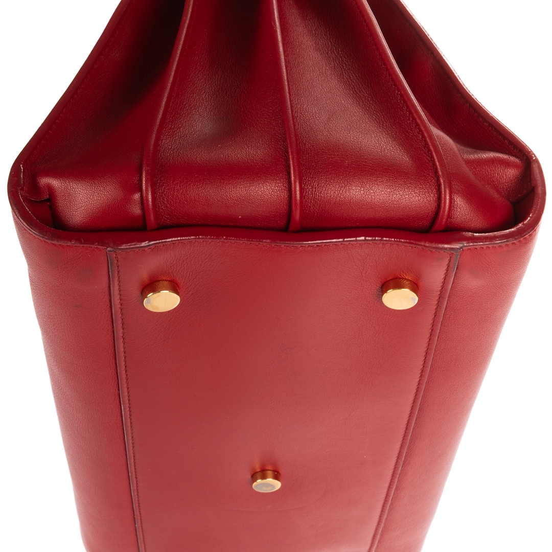 A vintage YSL red calf leather Sac De Jour Nano bag with a certificate of authenticity, Approximately 24cm height, 31cm width.