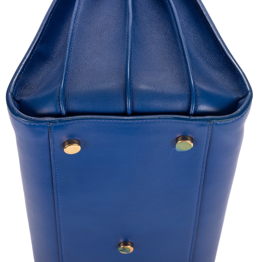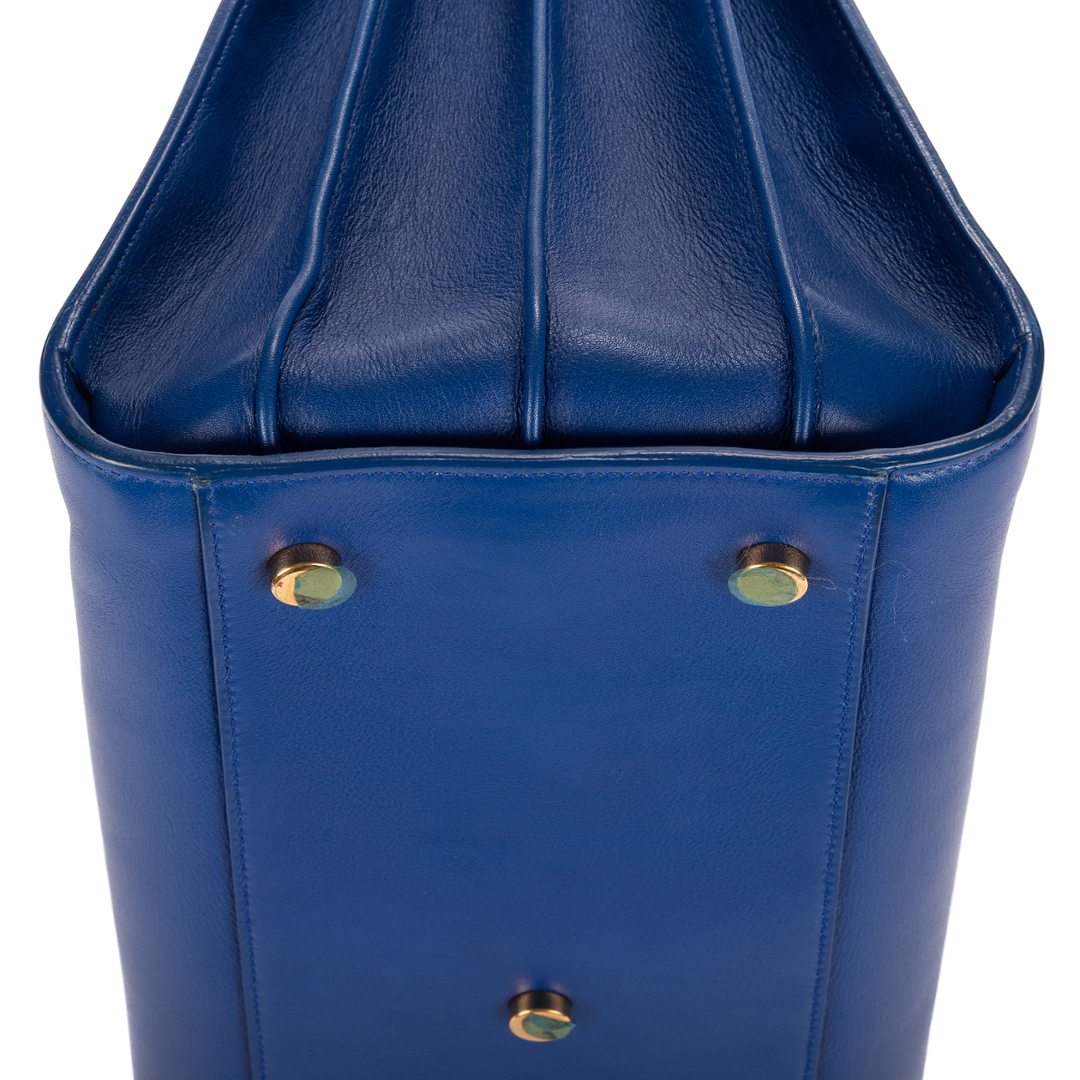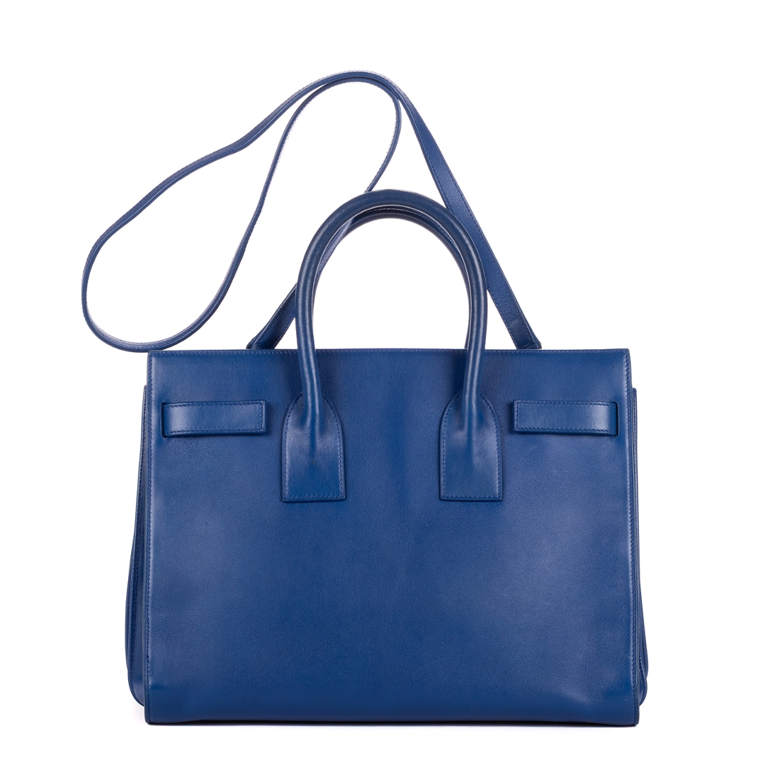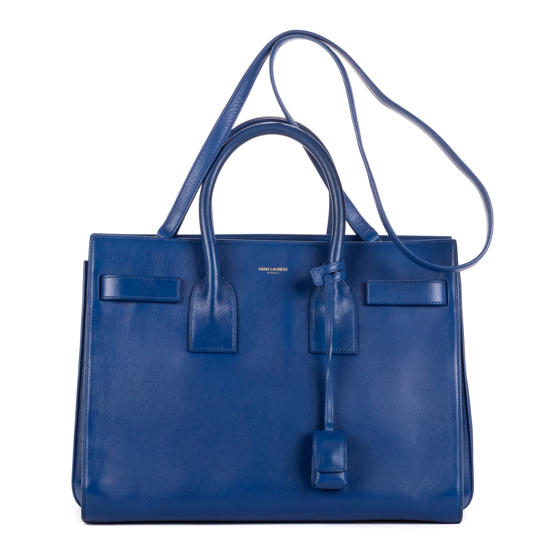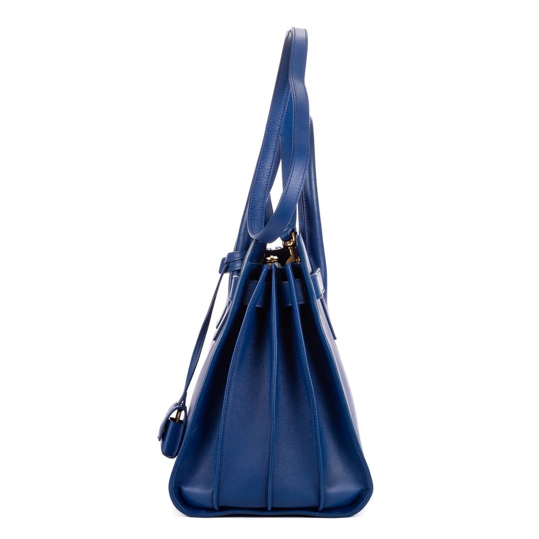 A vintage YSL blue calf leather Sac De Jour Nano bag with a certificate of authenticity, Approximately 24cm height, 31cm width.