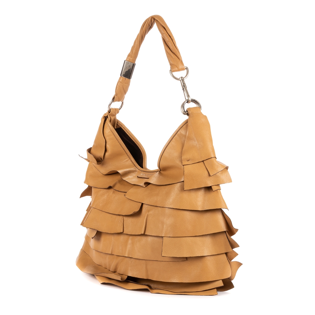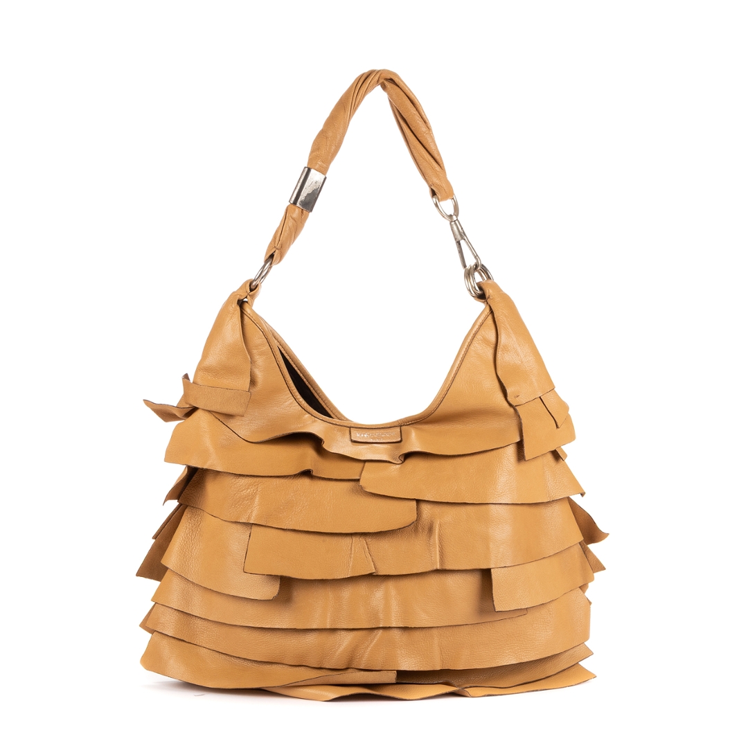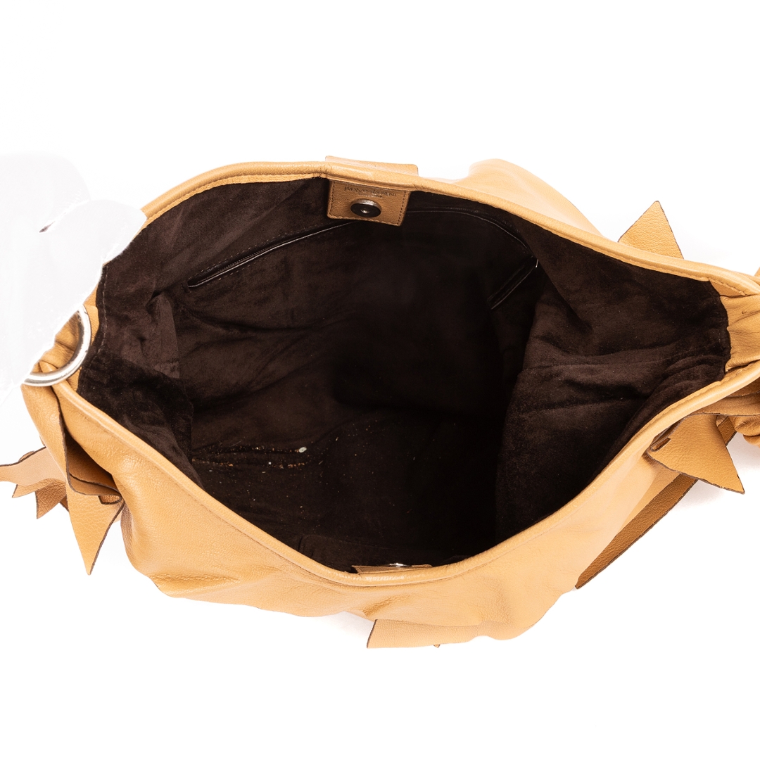 A vintage YSL beige calf leather Saint-Tropez bag with a certificate of authenticity, Approximately 29cm height, 28cm width.