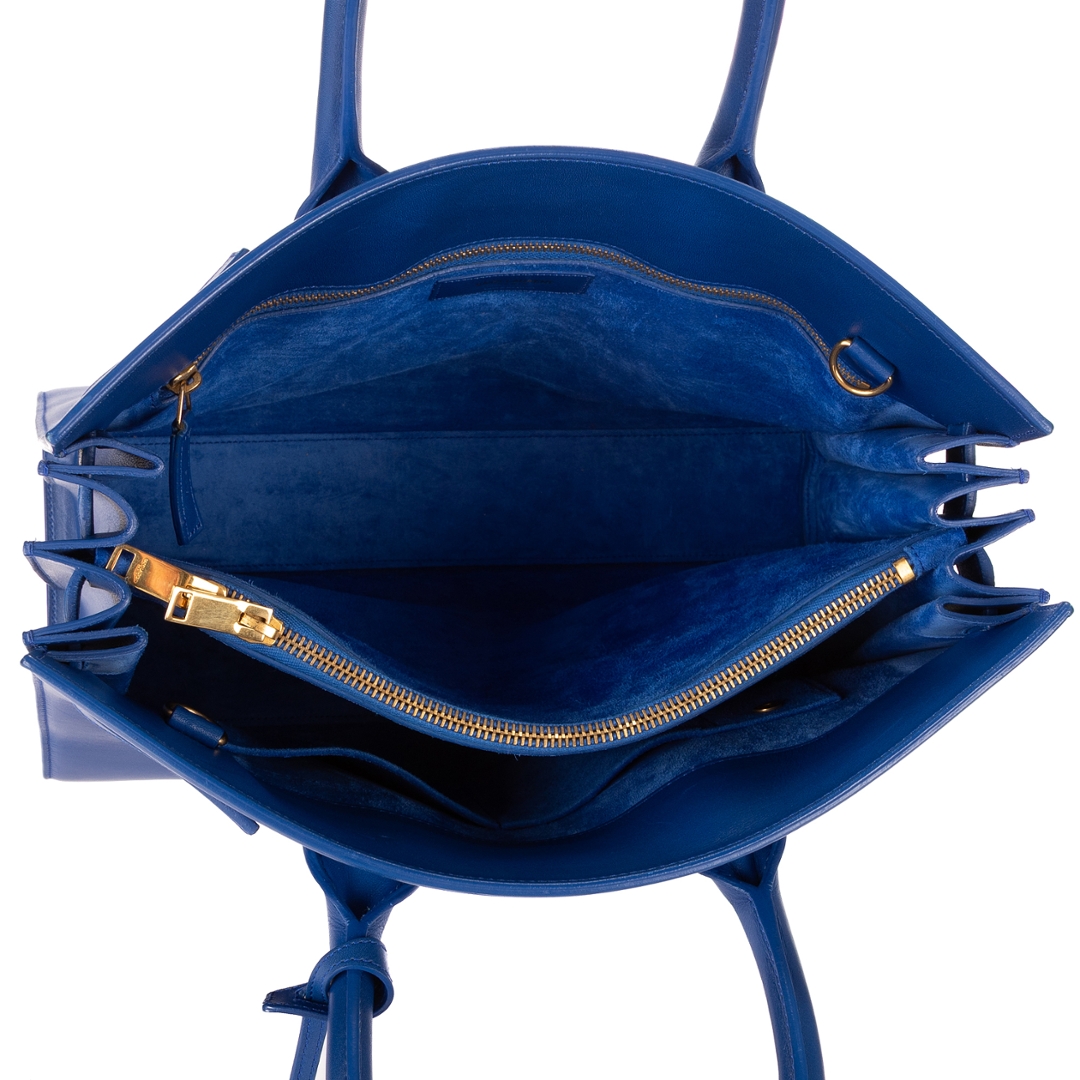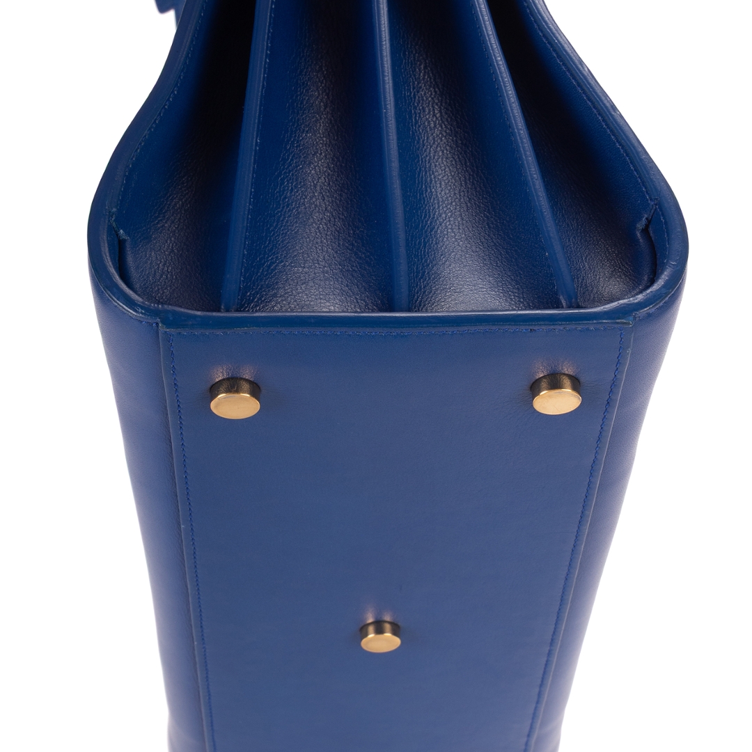 A vintage YSL blue calf leather Supple Sac De Jour bag with a certificate of authenticity, Approximately 24cm height, 31cm width.