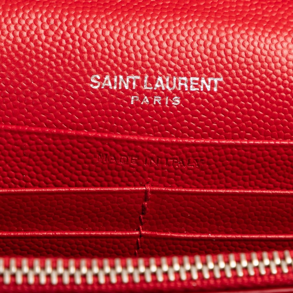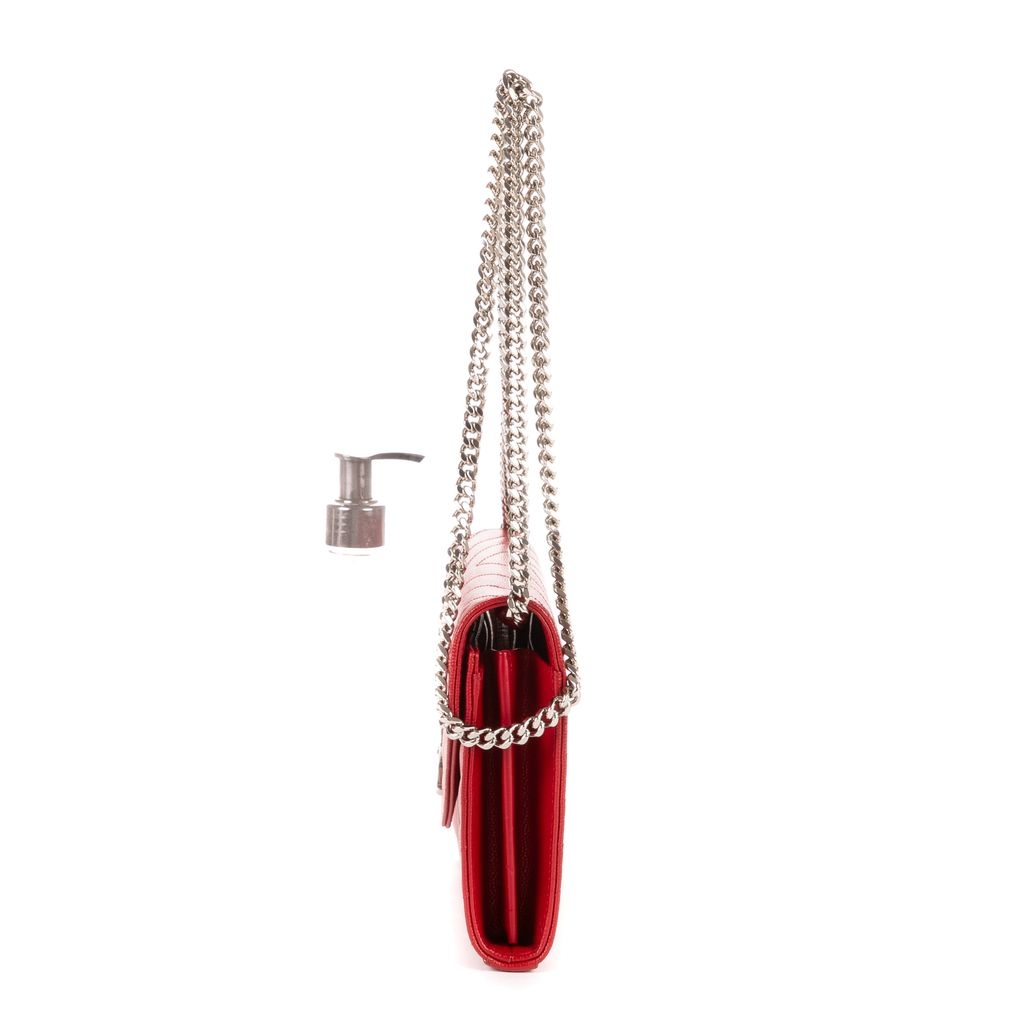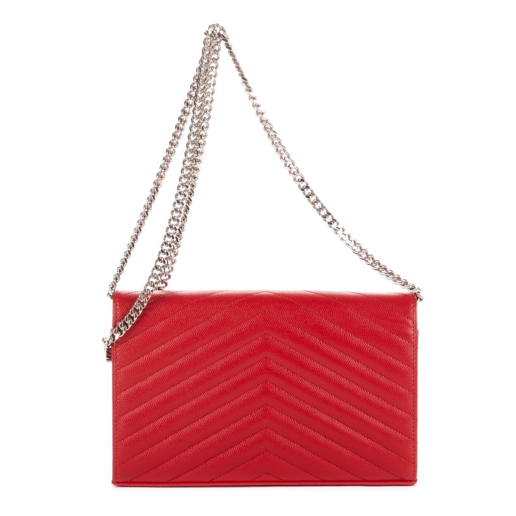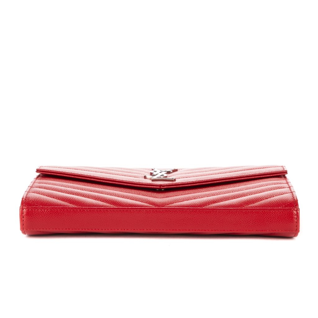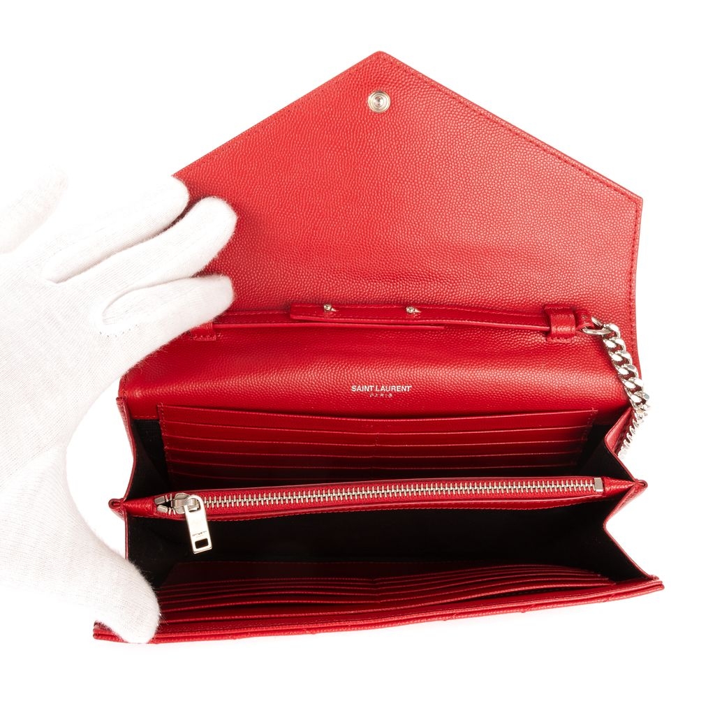 A vintage YSL dark red calf leather Wallet on Chain with a certificate of authenticity, Approximately 13cm height, 22cm width.