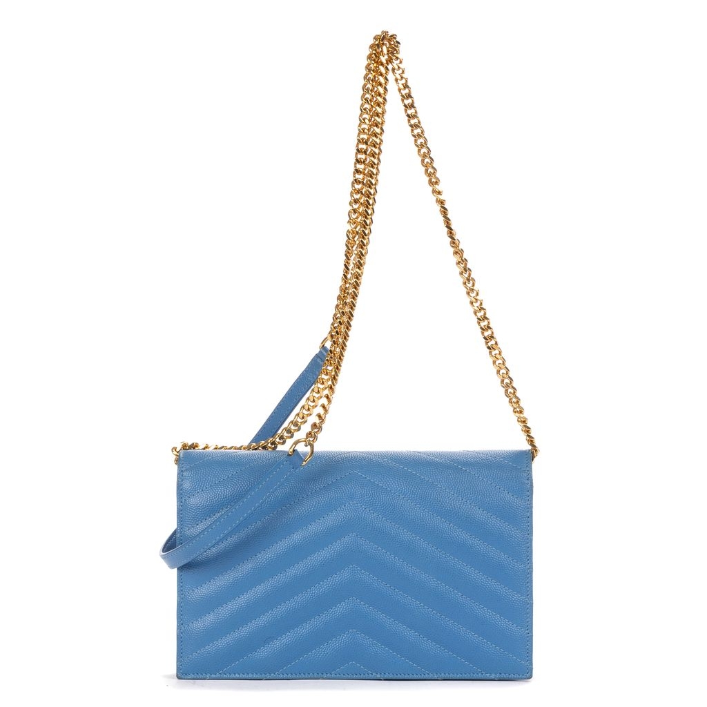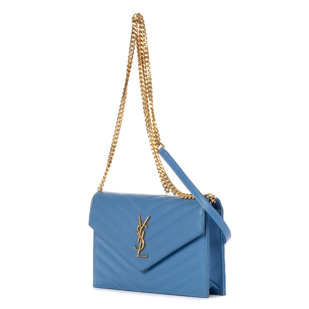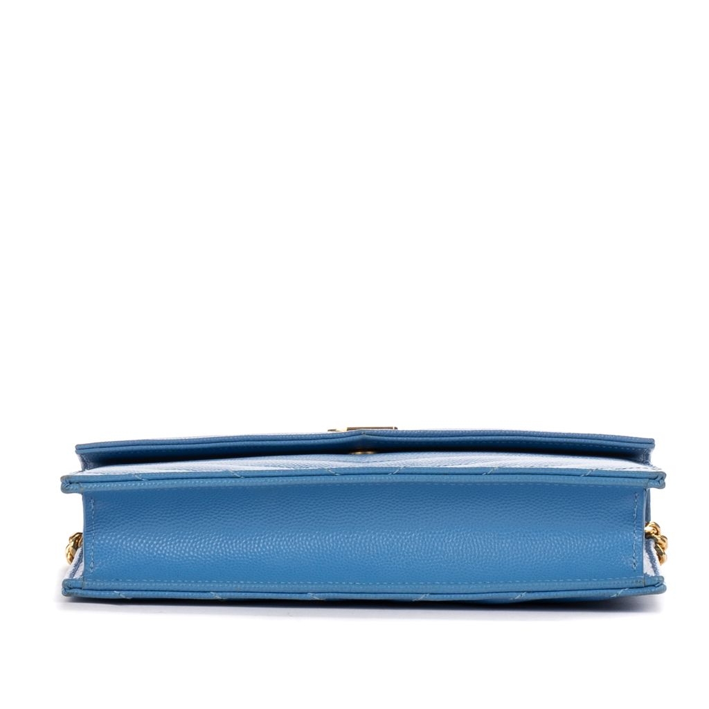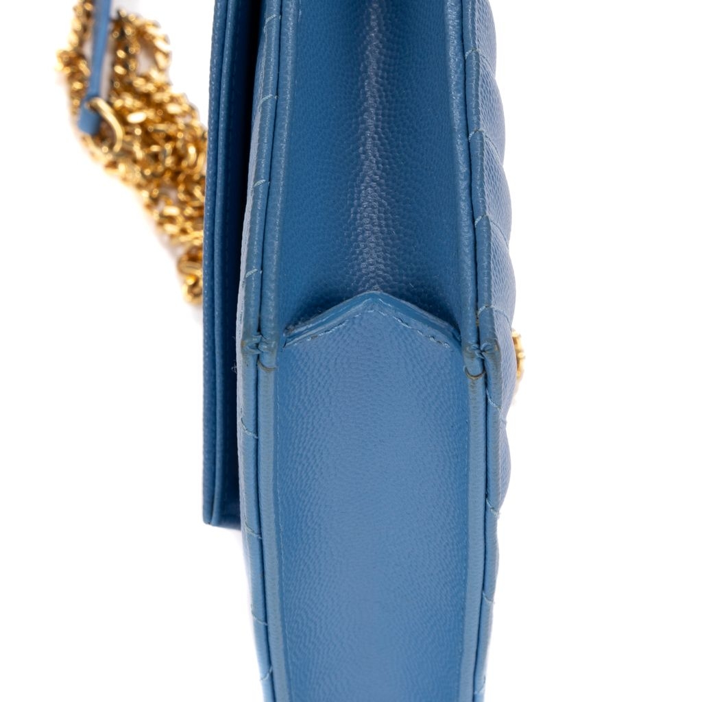 A vintage YSL blue calf leather Wallet on Chain bag with a certificate of authenticity, Approximately 13cm height, 19cm width.