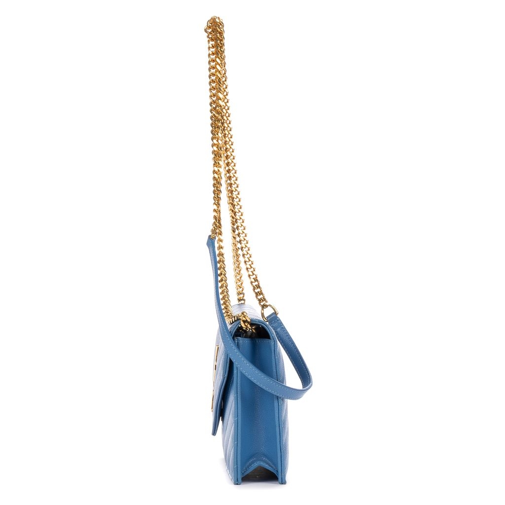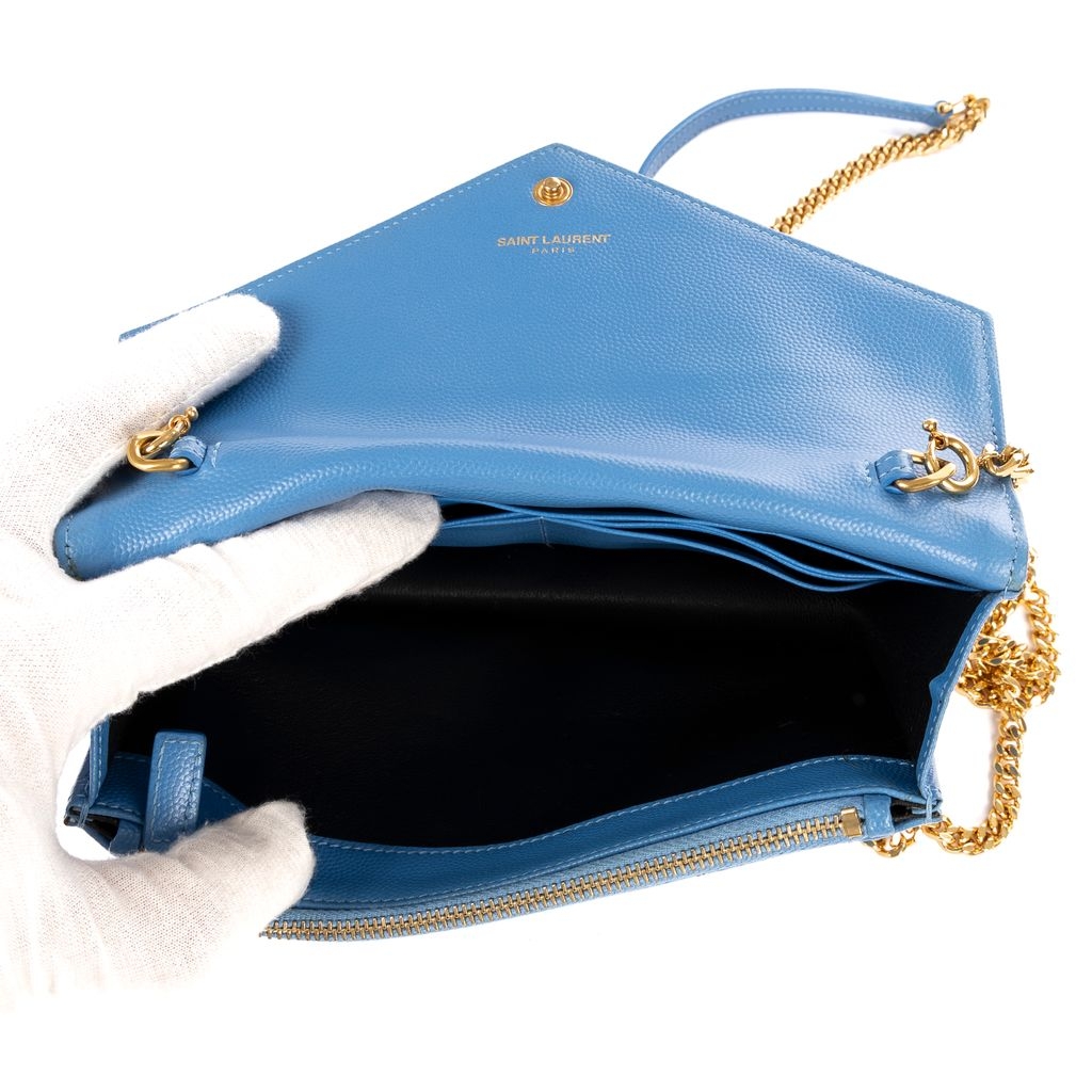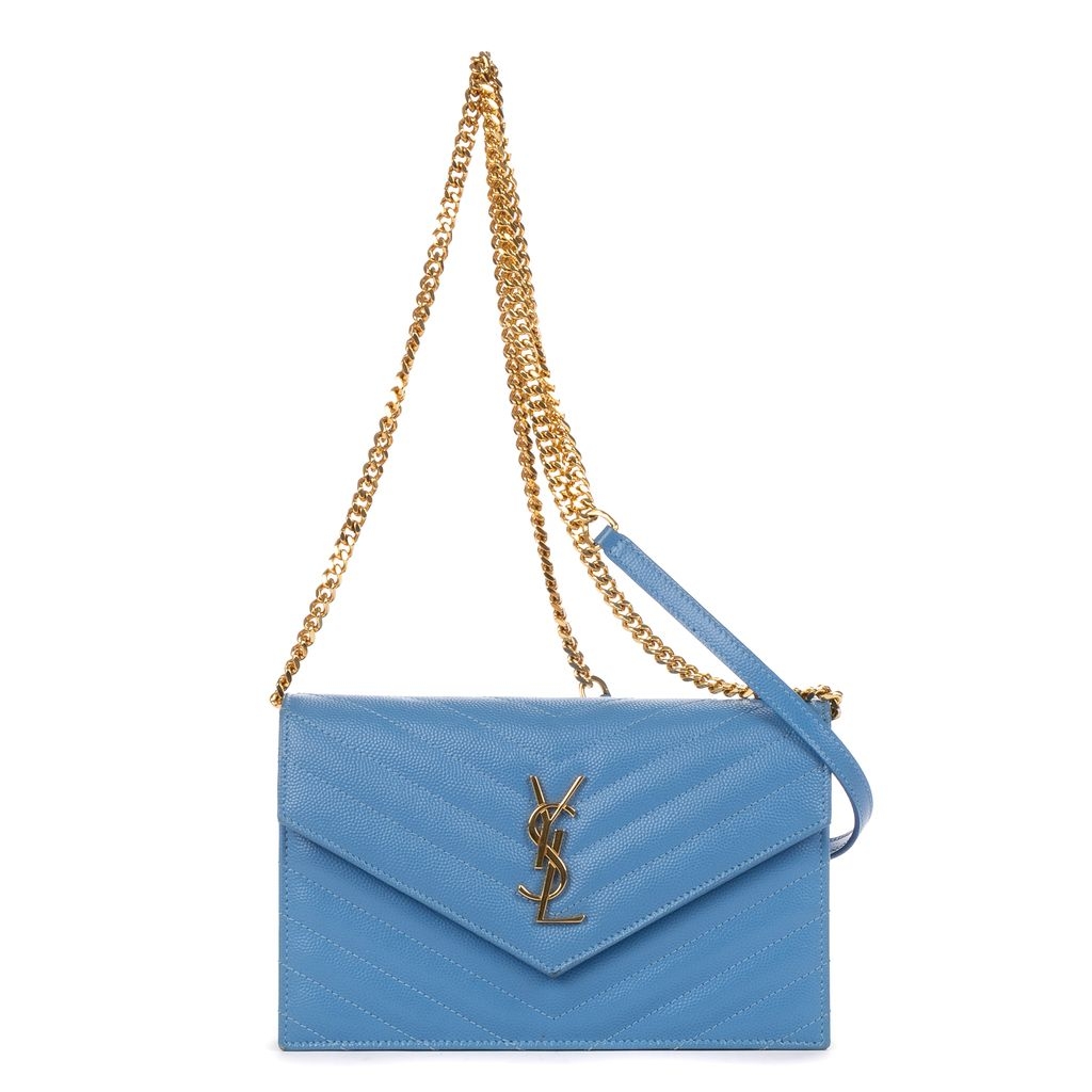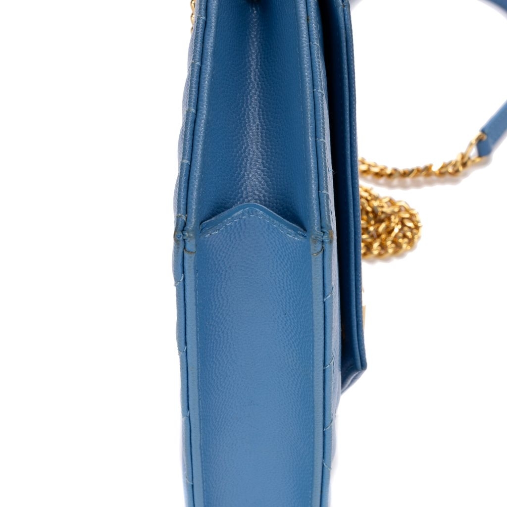 A vintage YSL blue calf leather Wallet on Chain bag with a certificate of authenticity, Approximately 13cm height, 19cm width.
