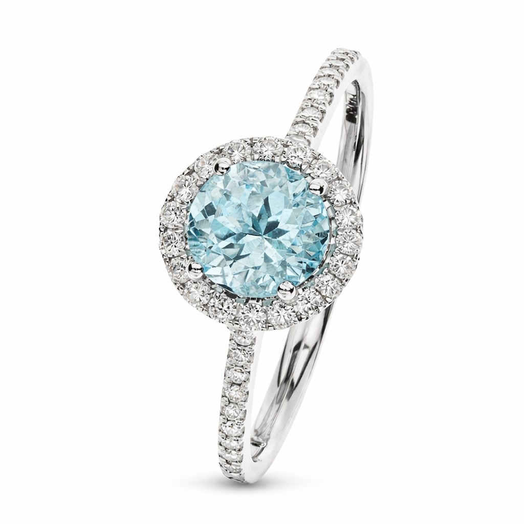 - > Natural Aquamarine 1.19ct & Diamond 0.40ct Round Shaped Cluster Ring