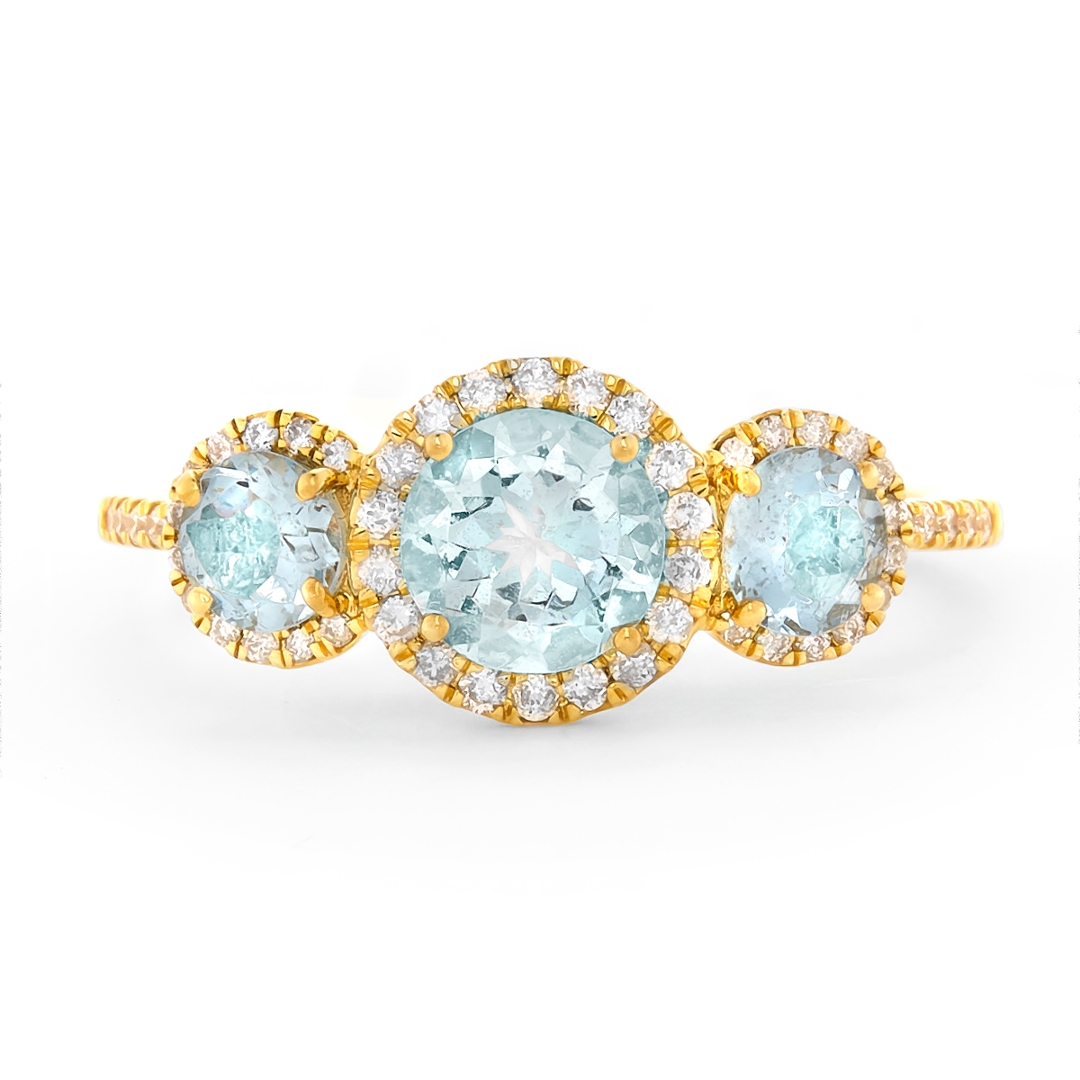 - > Natural Aquamarine 1.25ct & Diamond 0.26ct Round Shaped Trio Cluster Ring