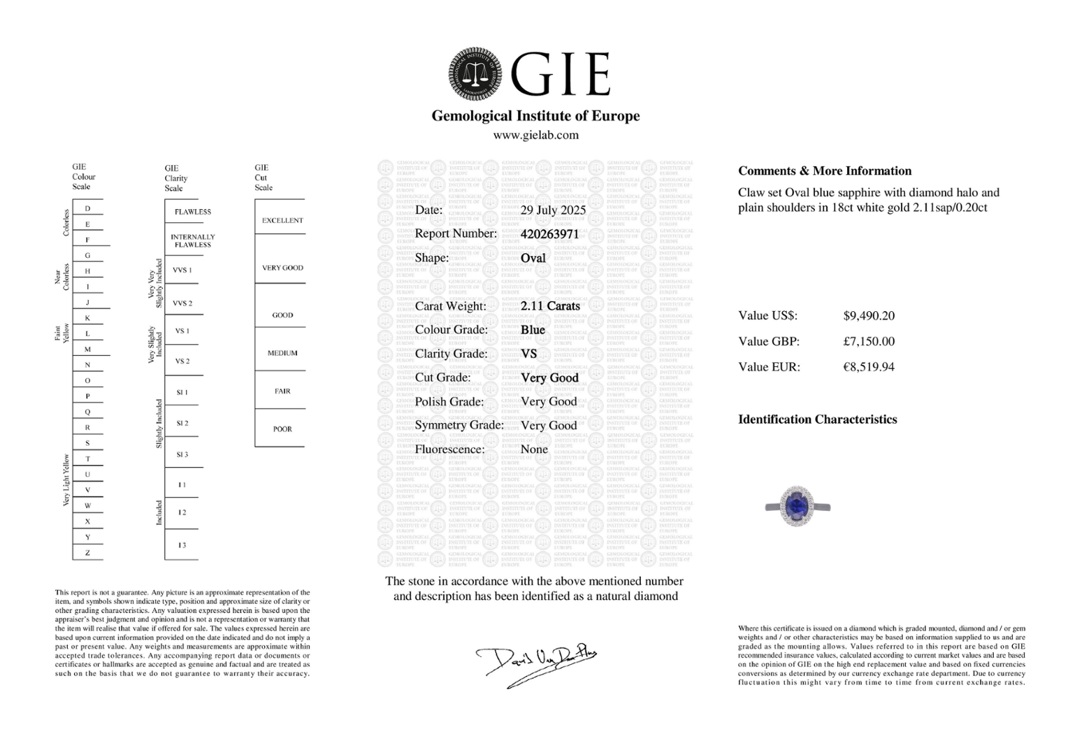 With a valuation of £7,150.00, this ring offers lasting luxury and enduring value. Blue sapphires and natural diamonds remain highly regarded in fine jewellery markets, making this piece a sophisticated acquisition with both beauty and investment appeal.