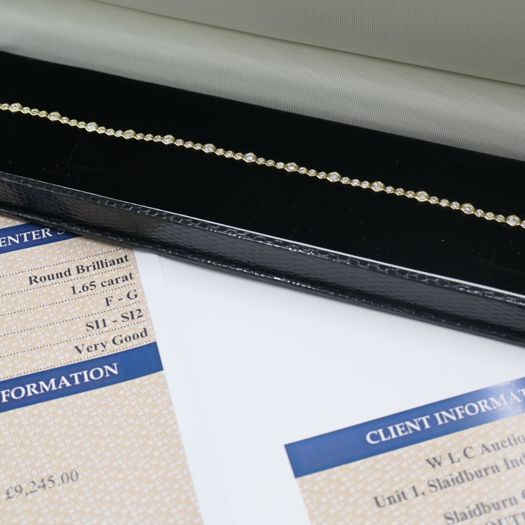 With a certified valuation of £9,245, this bracelet also represents an excellent investment opportunity. Natural diamonds have consistently retained and increased in value, offering both aesthetic pleasure and financial security. This bracelet is not only a striking adornment but also a lasting asset, perfect for those seeking a piece that balances elegance with enduring worth. It is a refined choice for gifting or for adding timeless beauty to any collection.