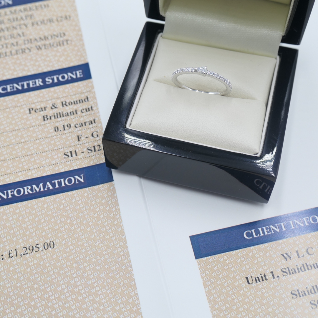 Beyond its elegance, this ring offers investment potential, as natural diamonds have consistently retained value due to their scarcity and global demand. Certified and set in durable platinum, this piece embodies a harmonious blend of beauty and financial reassurance. With an estimated retail value of £1,295.00, it offers both timeless elegance and long-term desirability.