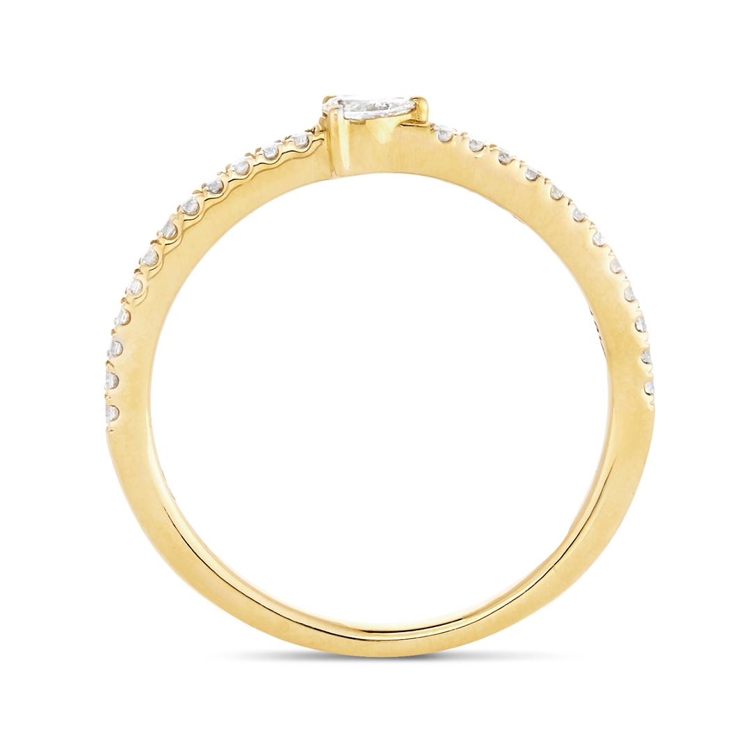 A brand new, unused, certified natural diamond cluster ring, set with one pear-cut diamond & a cluster of brilliant-cut diamonds within the band, set in 18ct yellow gold.