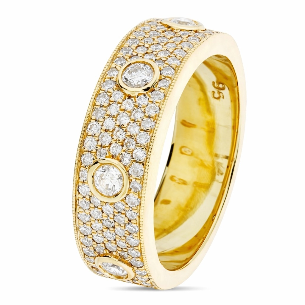 A brand-new, unused, certified 18ct yellow gold natural diamond cluster ring, set with an impressive array of 114 round brilliant-cut natural diamonds totalling 0.70ct. Each diamond has been carefully graded F–G in colour and VS2–SI1 in clarity, ensuring an exceptional balance of brightness, fire, and overall visual appeal. The craftsmanship is enhanced by the richness of the yellow gold, which adds warmth and depth to the stones' dazzling sparkle. with a weight of 7.53 grams. The wide band design showcases the diamonds beautifully, making it both a luxurious statement piece and a timeless addition to any fine jewellery collection.