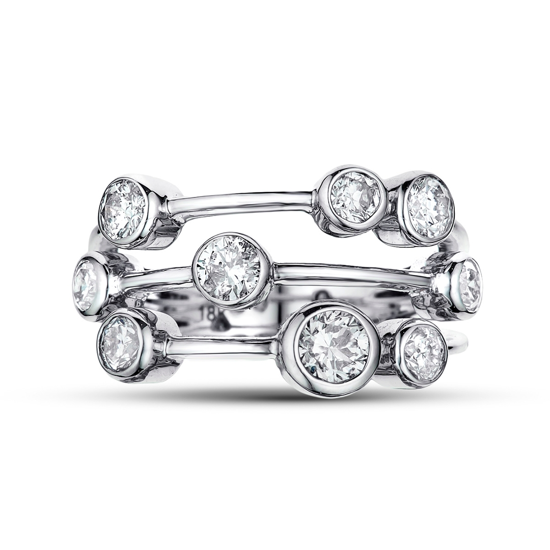 The sleek 18ct white gold setting provides the perfect backdrop for the diamonds’ radiant brilliance, its cool, lustrous tone amplifying their natural sparkle. Designed with precision and balance, the ring feels substantial yet refined, offering both comfort and enduring style. Every stone is securely set to ensure lasting beauty and durability, showcasing the meticulous attention to detail found only in fine jewellery.
