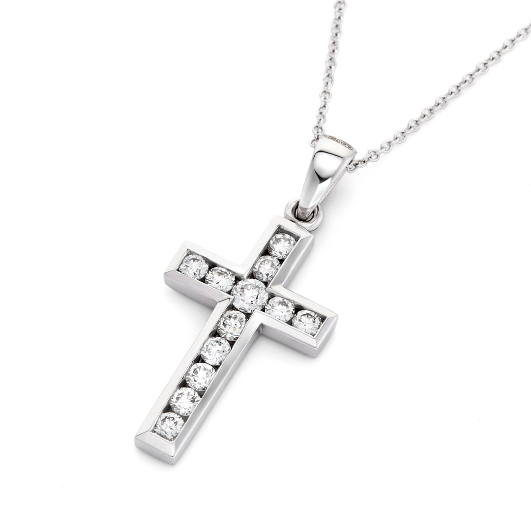 A brand new, unused, certified natural diamond cross pendant, set with brilliant cut diamonds, set in 18ct white gold.