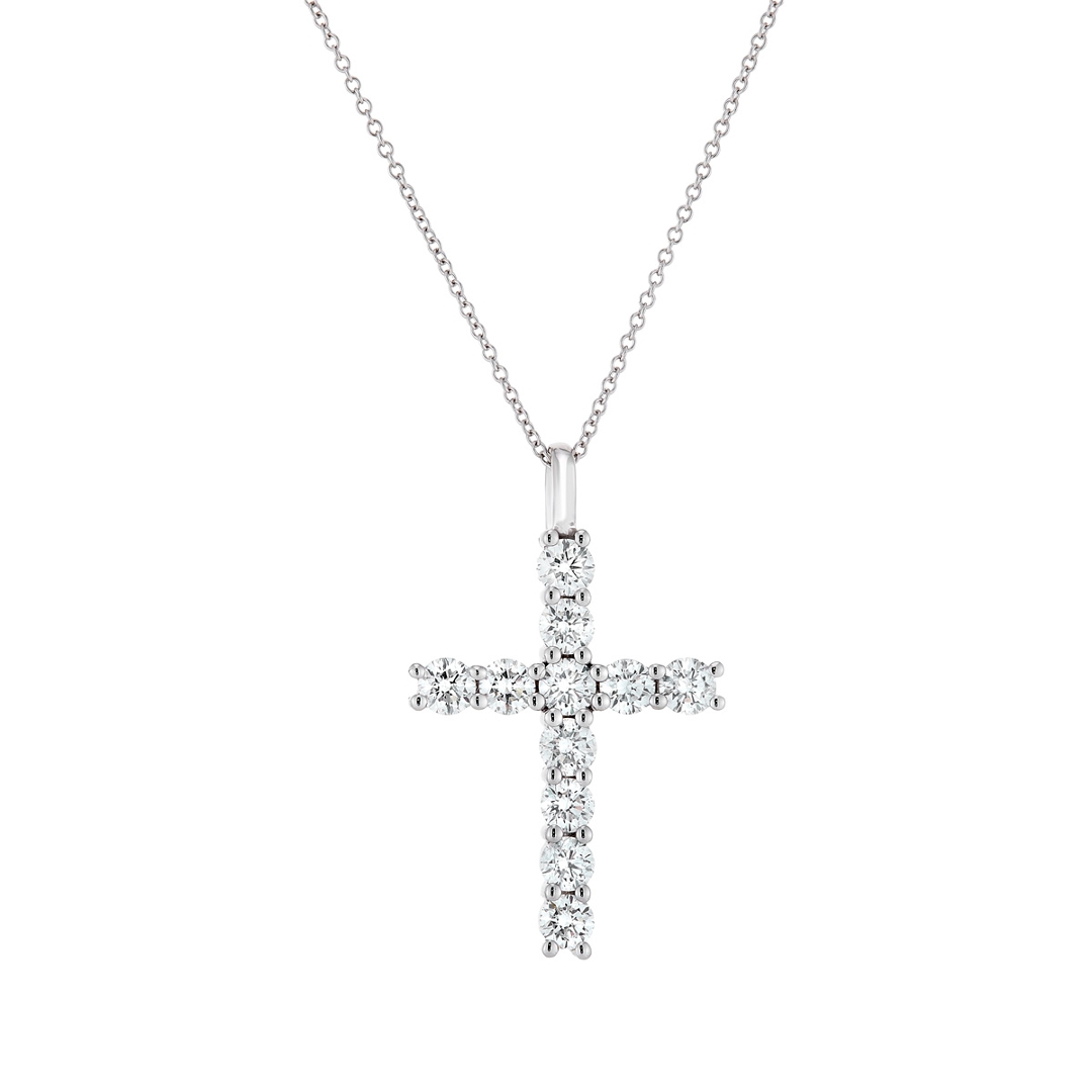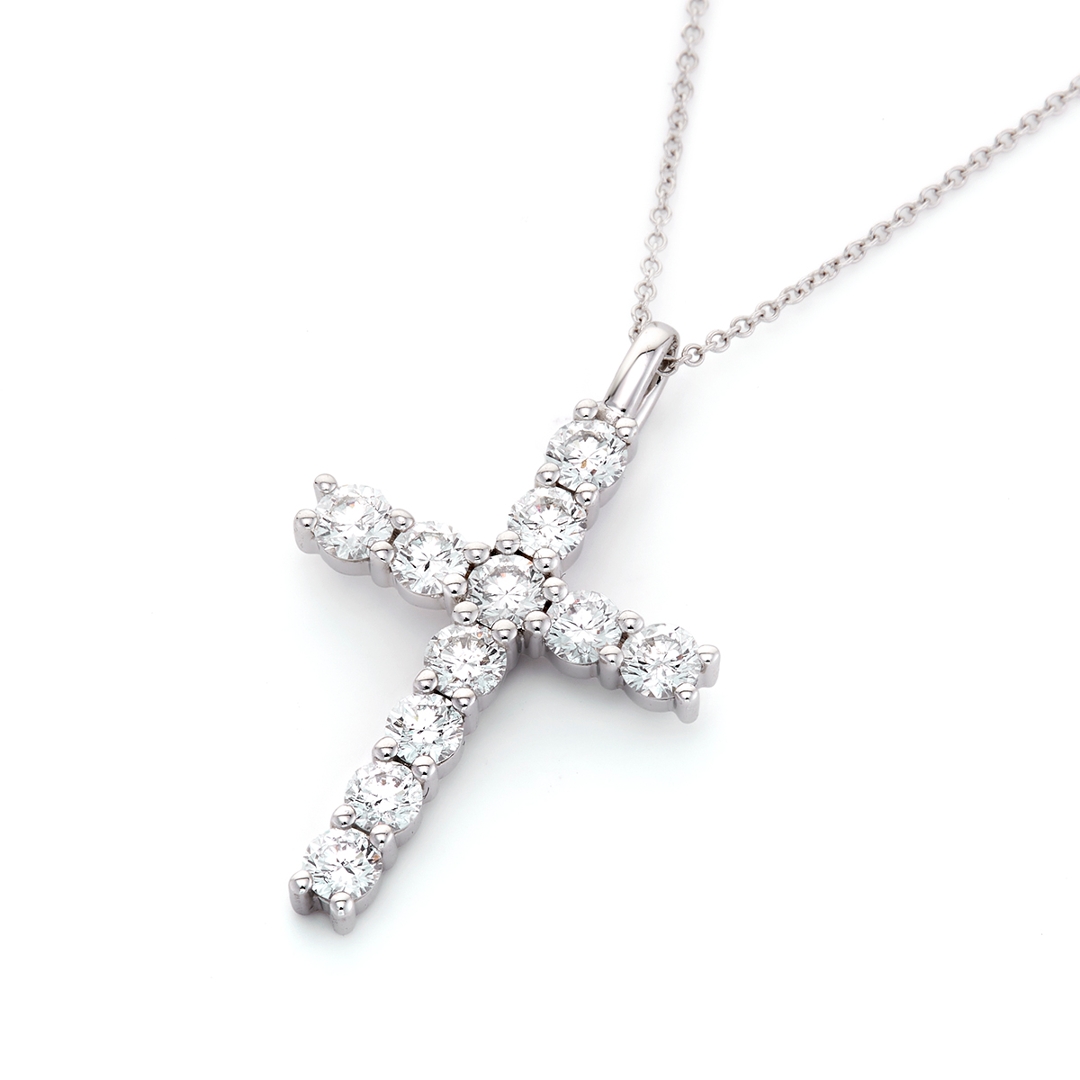 A brand new, unused, certified natural diamond cross pendant, set with a cluster of brilliant cut diamonds, set in 18ct white gold.