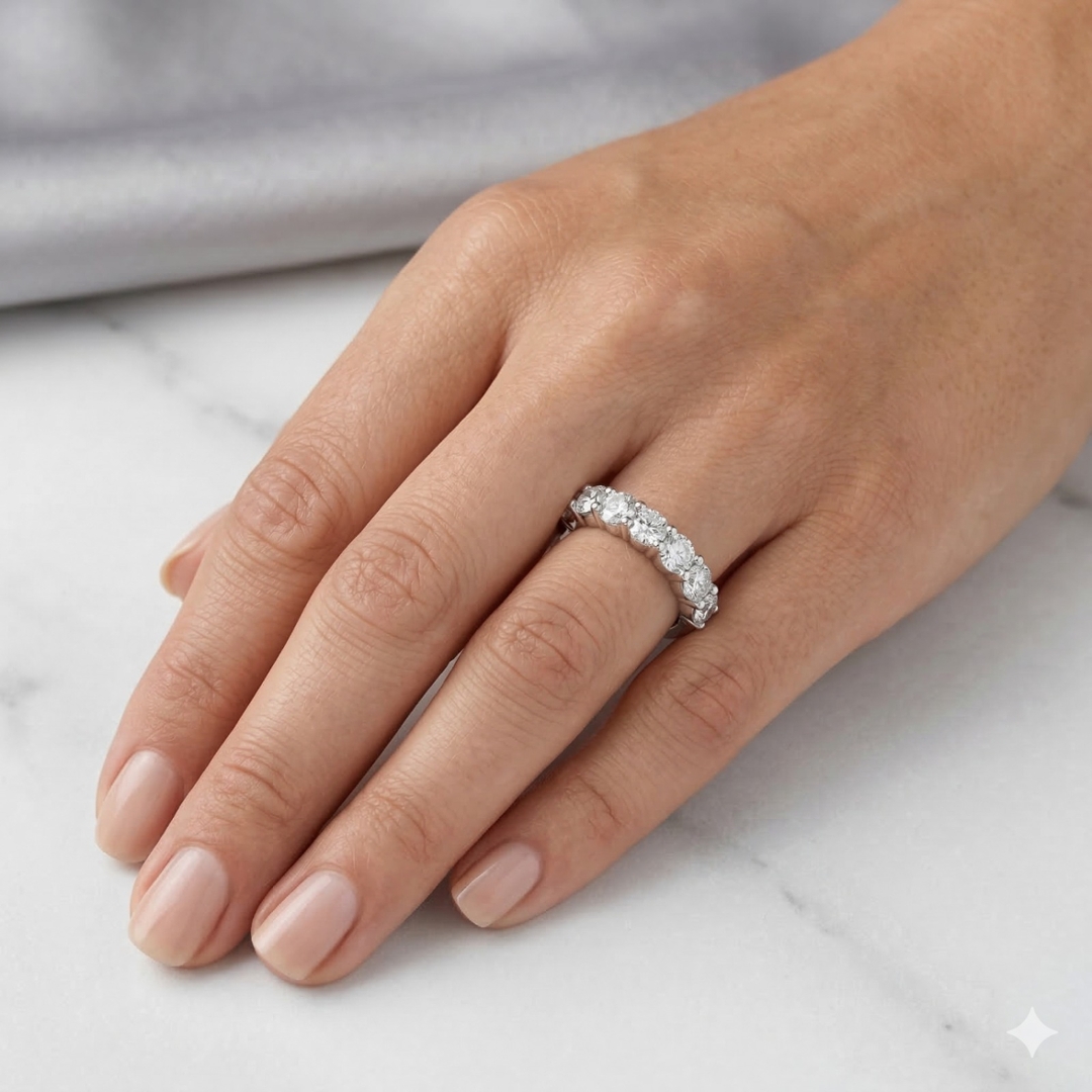 A brand-new, unused, certified platinum eight-stone eternity ring, this striking piece is set with a continuous row of brilliant-cut natural diamonds weighing a total of 2.04 carats. Each diamond, carefully matched in VS2–SI1 clarity and G–H colour, has been selected for its sparkle and vibrancy, creating a seamless band of brilliance across the finger. The incredible sheen and enduring strength of platinum form the perfect setting, complementing the stones' fire and ensuring the design retains both its elegance and durability. With its classic proportions and impressive diamond weight, this ring is a refined choice that balances luxury and timeless style.