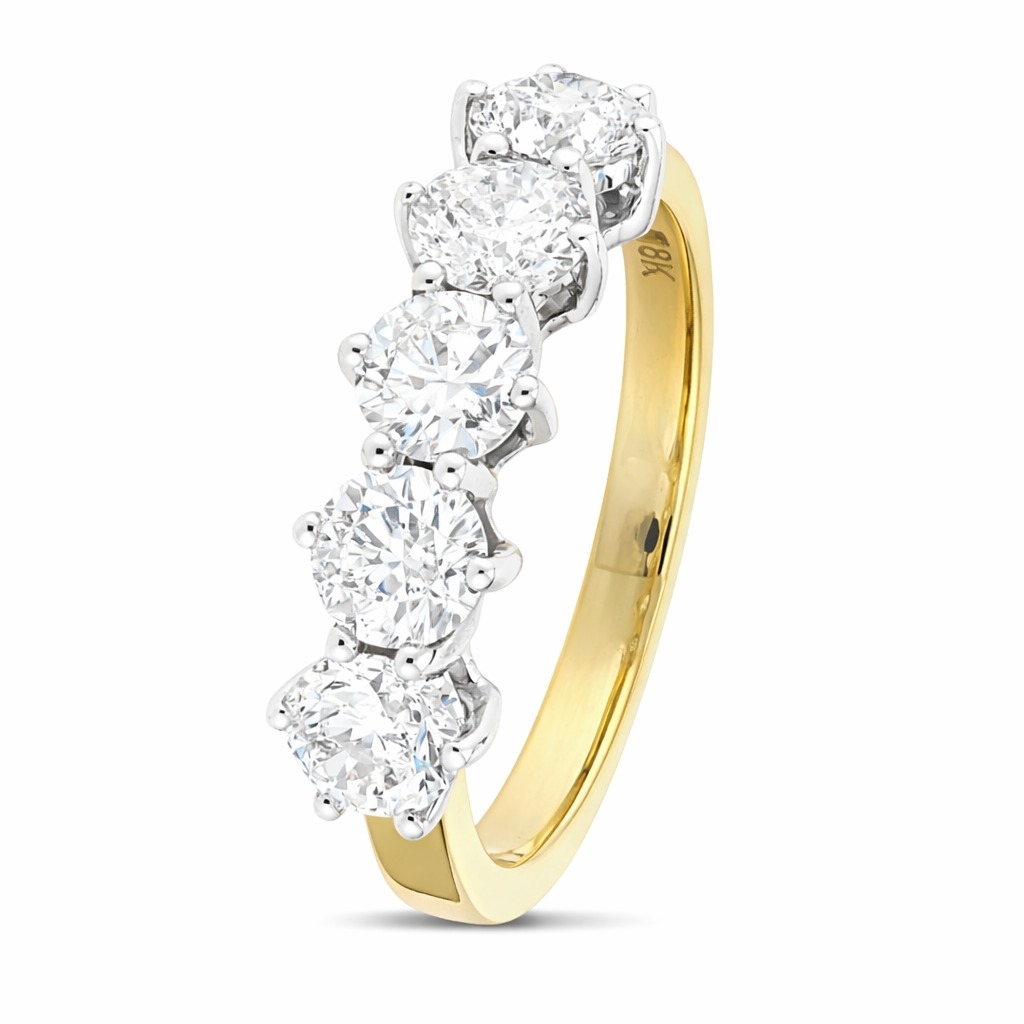 A brand-new, unused, certified natural diamond five-stone eternity ring, set with five brilliant-cut diamonds, set in 18ct yellow & white gold.