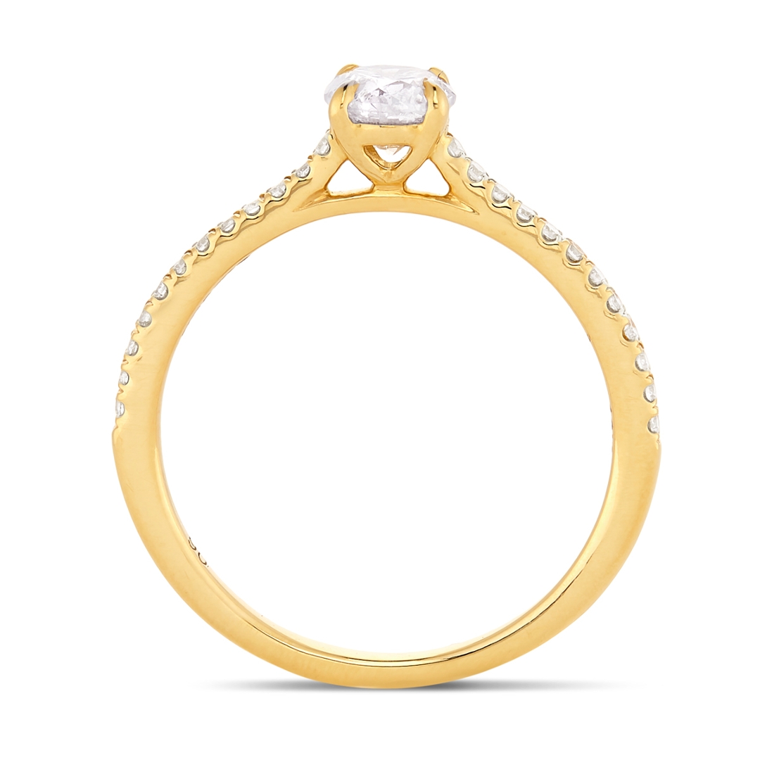 A brand-new, unused, certified 18ct yellow gold diamond engagement ring that combines traditional elegance with the radiant brilliance of natural diamonds. At its centre sits a 0.50-carat round brilliant-cut diamond, graded F in colour for a crisp, near-colourless appearance and SI2 clarity, offering lively sparkle and fire. Surrounding the band are 24 additional round brilliant cut natural diamonds, weighing a total of 0.12 carats, set neatly along the shoulders to enhance the overall radiance and give the ring a striking finish. The warm glow of yellow gold contrasts beautifully with the bright diamonds, creating a timeless and classic design.
