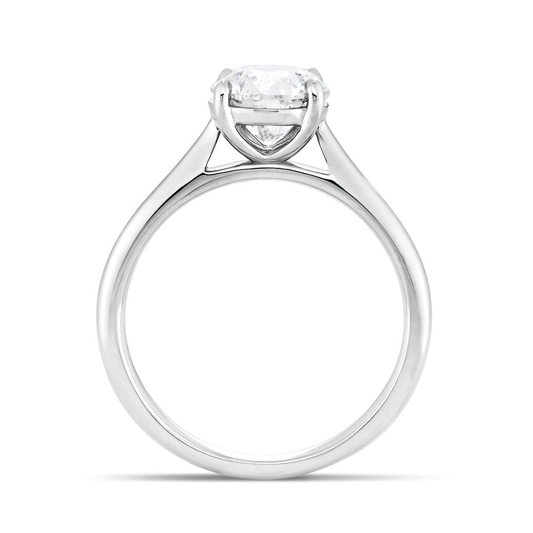 A brand-new, unused, certified natural diamond solitaire engagement ring, set with one brilliant cut diamond at the centre, set in platinum.