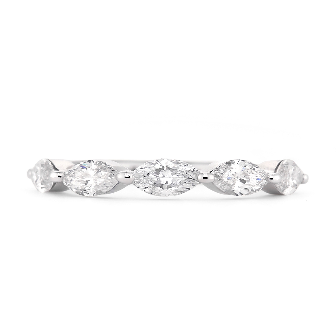A brand-new, unused platinum natural diamond wedding ring, beautifully crafted and set with five marquise-cut natural diamonds. The design totals 0.96 carat in diamond weight, graded F–G in colour and SI1–SI2 in clarity, ensuring a bright, near-colourless brilliance with elegant fire. The marquise cut, admired for its elongated shape and graceful symmetry, creates a refined and distinctive look, while the platinum mount enhances the diamonds’ natural radiance with strength and enduring lustre. With a total weight of 2.98g, this ring is both substantial and refined, offering timeless appeal as a wedding or anniversary band.