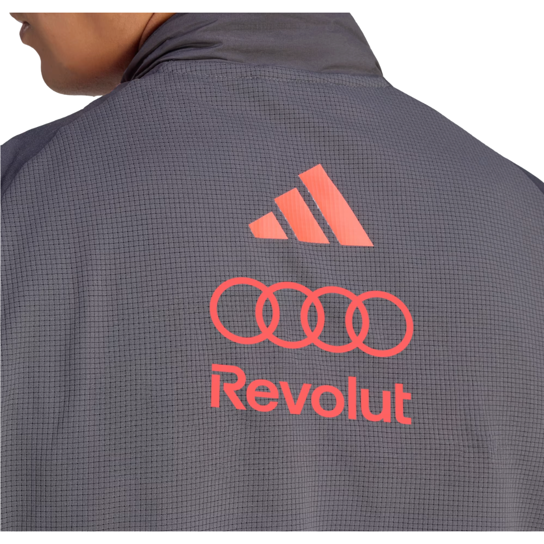 A brand new Adidas Audi Revolut F1 Team Mechanics Padded Vest, combining cutting-edge motorsport styling with practical everyday performance. Presented in a sleek dark grey finish, this official team piece features lightweight padded insulation across the body, delivering warmth without bulk. Striking red Audi rings, Revolut branding, and the iconic Adidas logo create a bold, high-contrast look synonymous with Formula 1 precision and innovation.