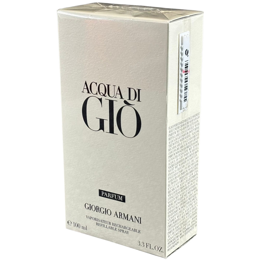 A 100ml bottle of Armani Acqua di Gio Parfum, presented in its