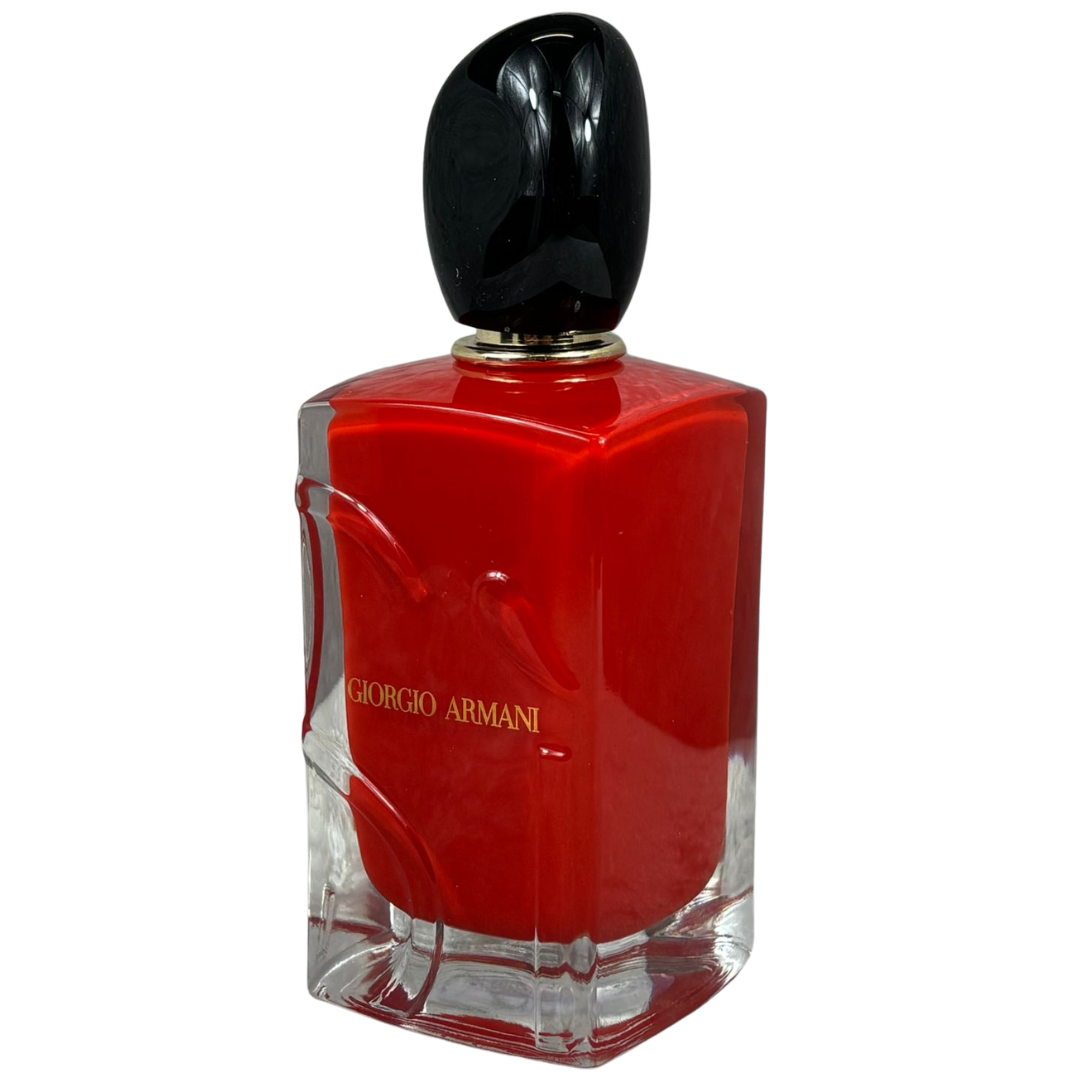 A 100ml bottle of Giorgio Armani Sì Passione Eau De Parfum, a bold and vibrant fragrance that captures confidence and modern femininity. It opens with a lively burst of blackcurrant and pear, delivering a fresh yet fruity introduction that feels energetic, elegant, and instantly captivating.