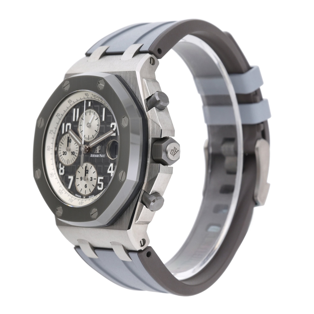 An Audemars Piguet Royal Oak Offshore Chronograph Watch, Grey Rubber Strap with a Titanium Case & Clasp on a Grey Dial