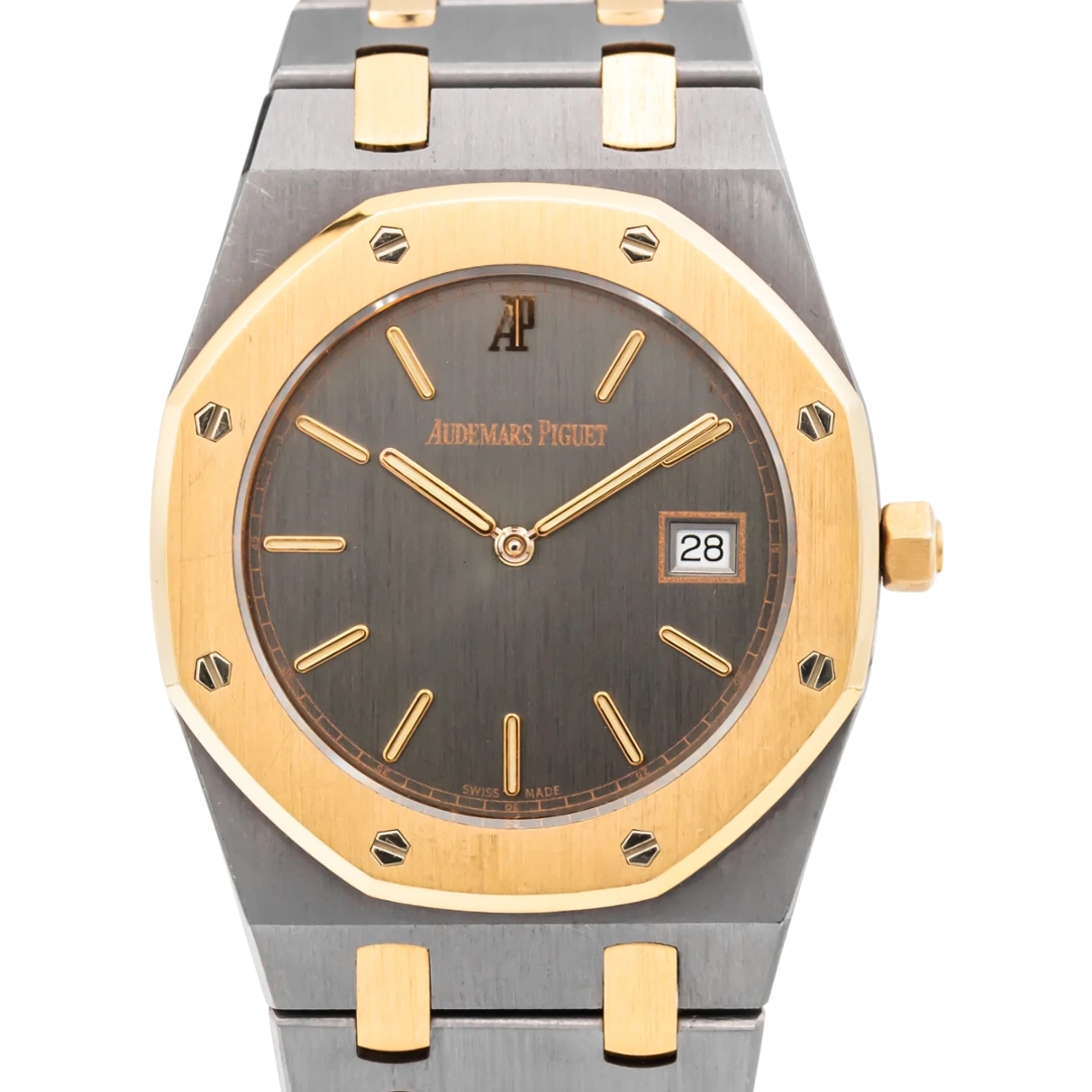 Powered by a reliable quartz movement, this 33mm reference delivers precision and ease of wear, housed within the iconic Royal Oak case with its signature octagonal bezel and exposed screws. The contrast between the darker tantalum and warm rose-gold accents creates a subtle yet striking presence on the wrist, reinforcing its niche appeal in the market.
