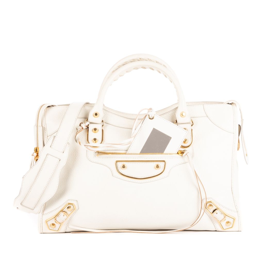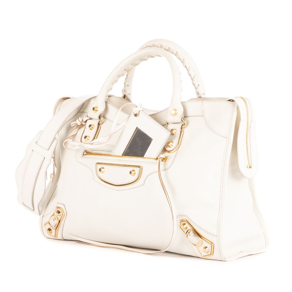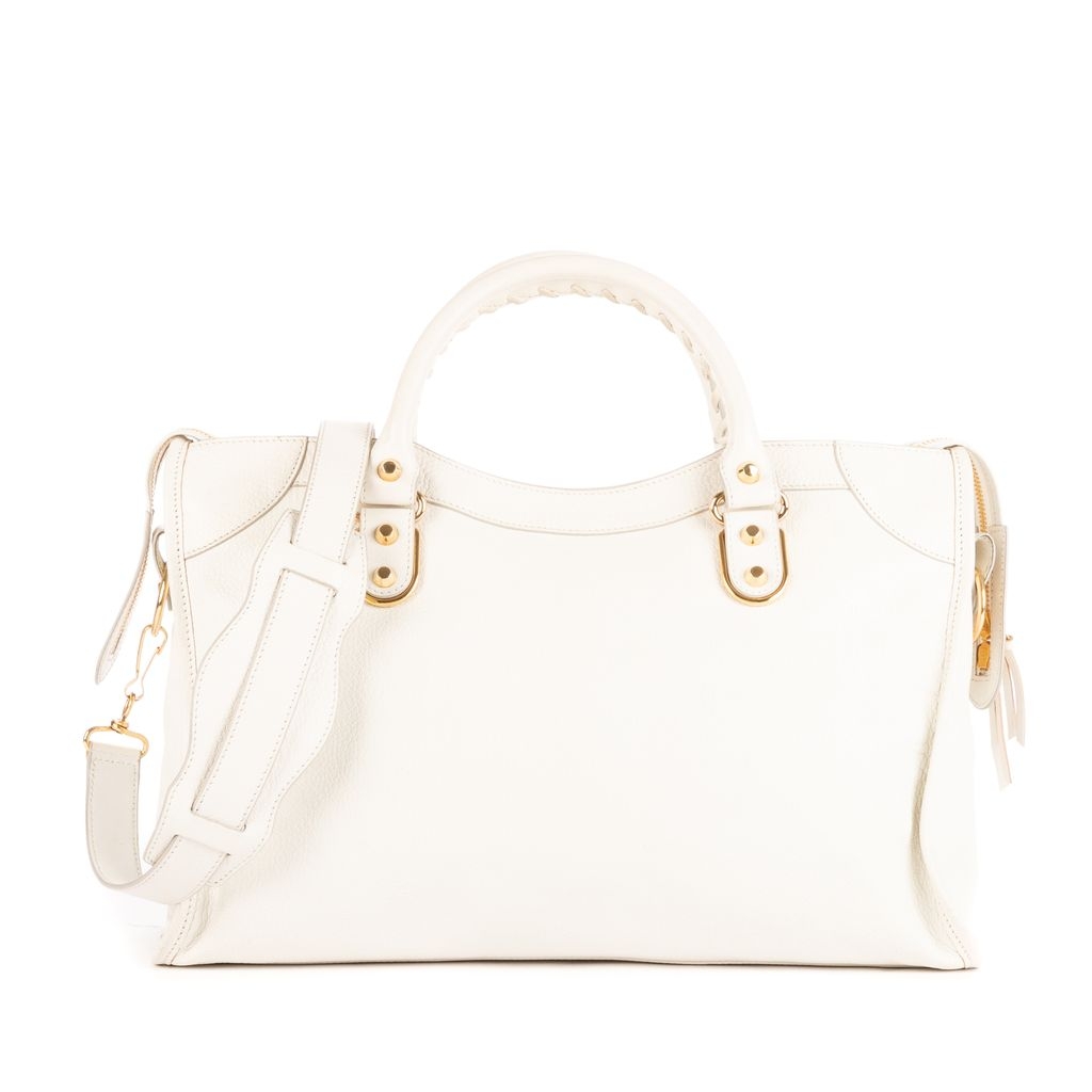 A vintage Balenciaga white calf leather Classic City bag with a certificate of authenticity, Approximately 22cm height, 36cm width.
