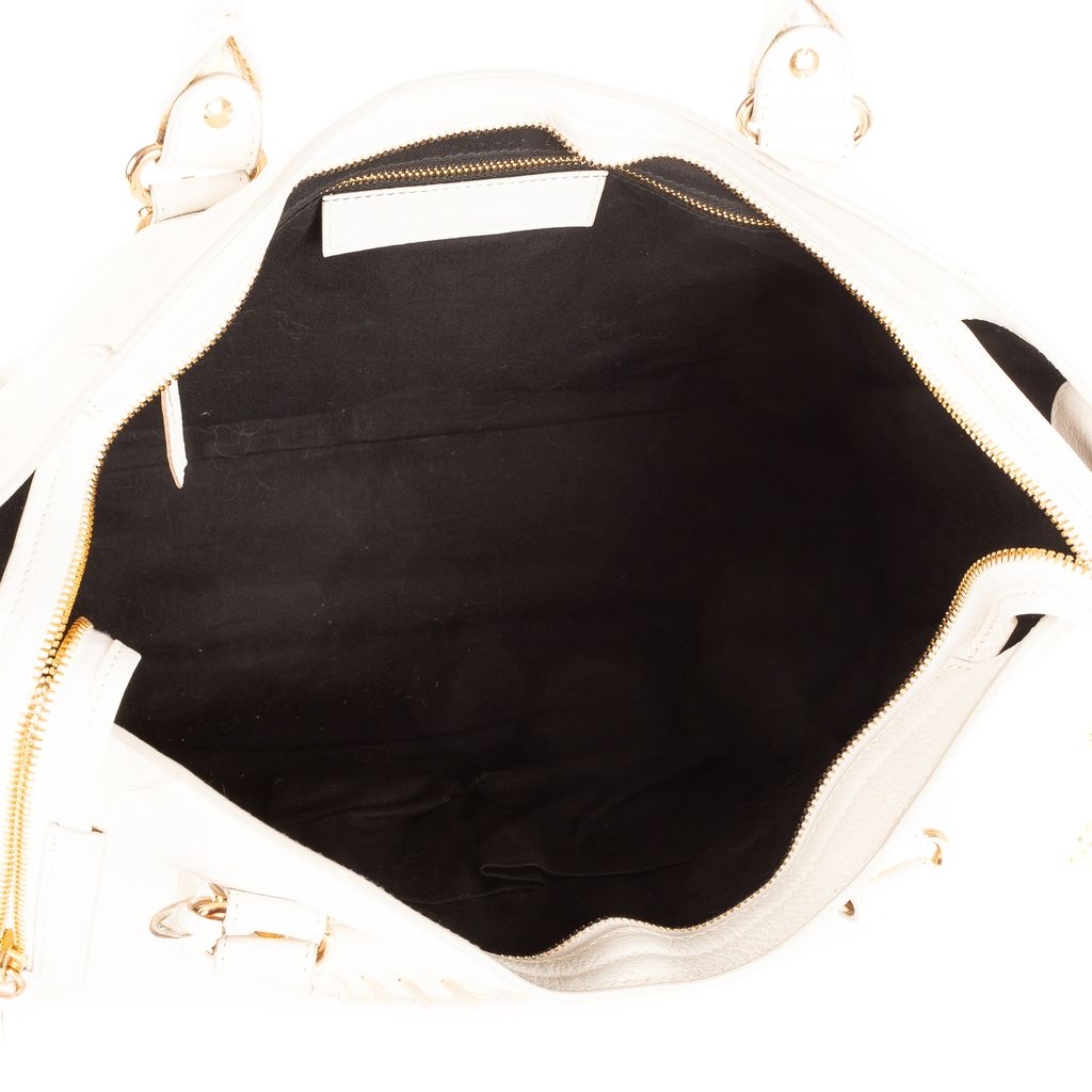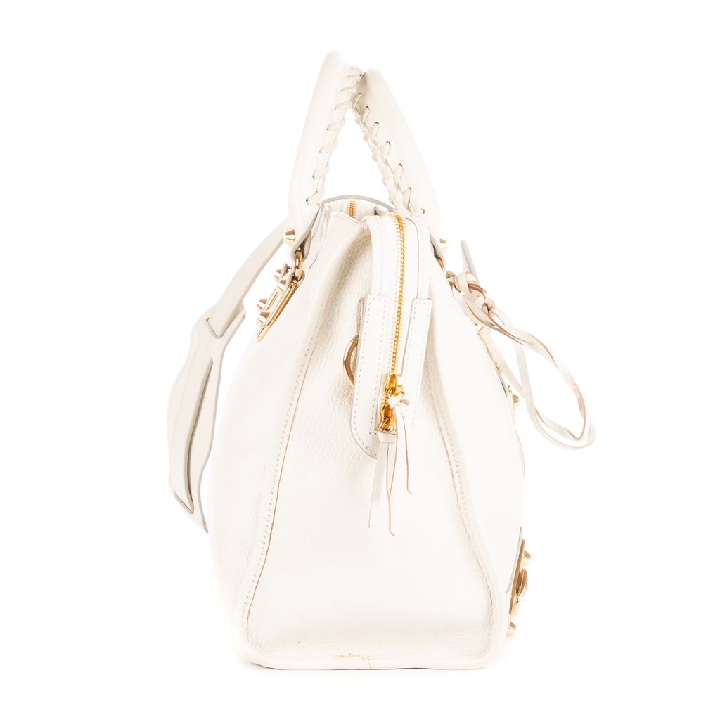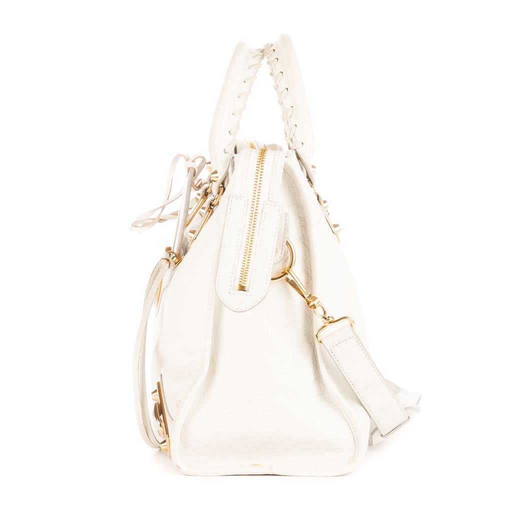 A vintage Balenciaga white calf leather Classic City bag with a certificate of authenticity, Approximately 22cm height, 36cm width.