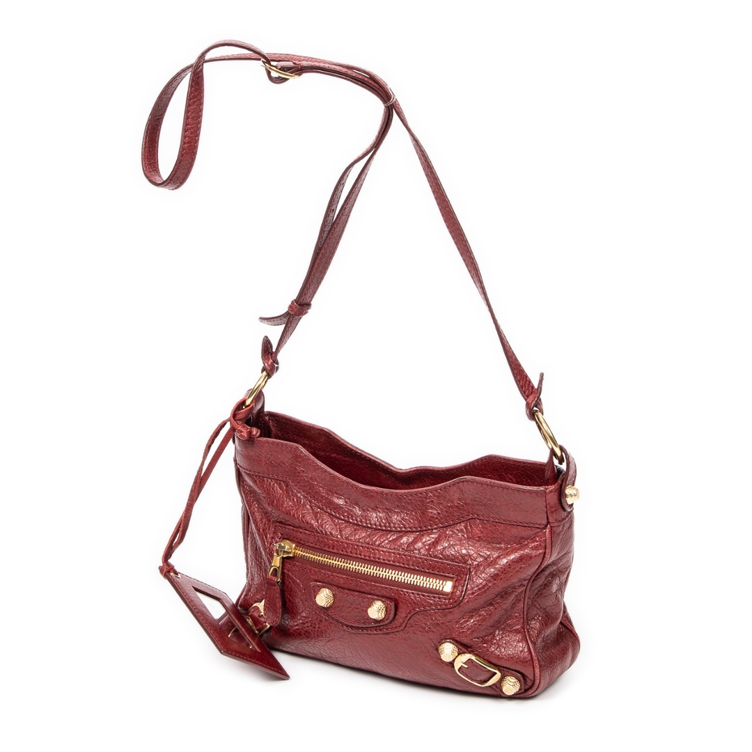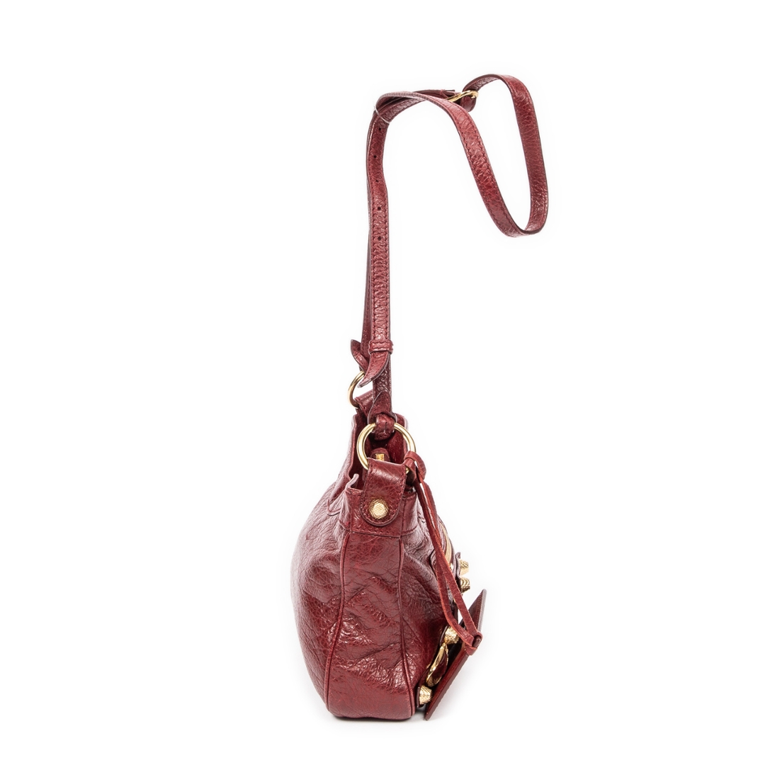 A vintage Balenciaga red calf leather Giant Hip bag with a certificate of authenticity, Approximately 16cm height, 23cm width.