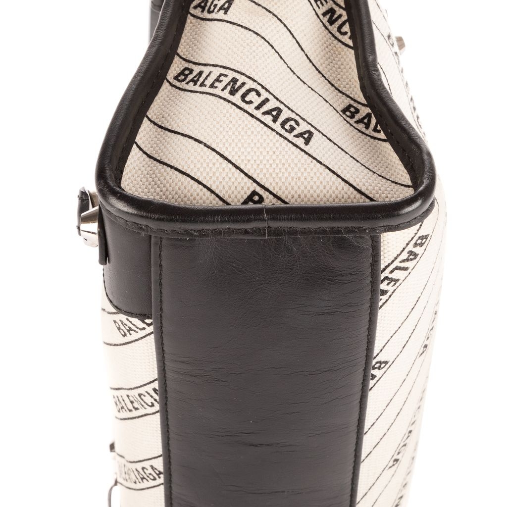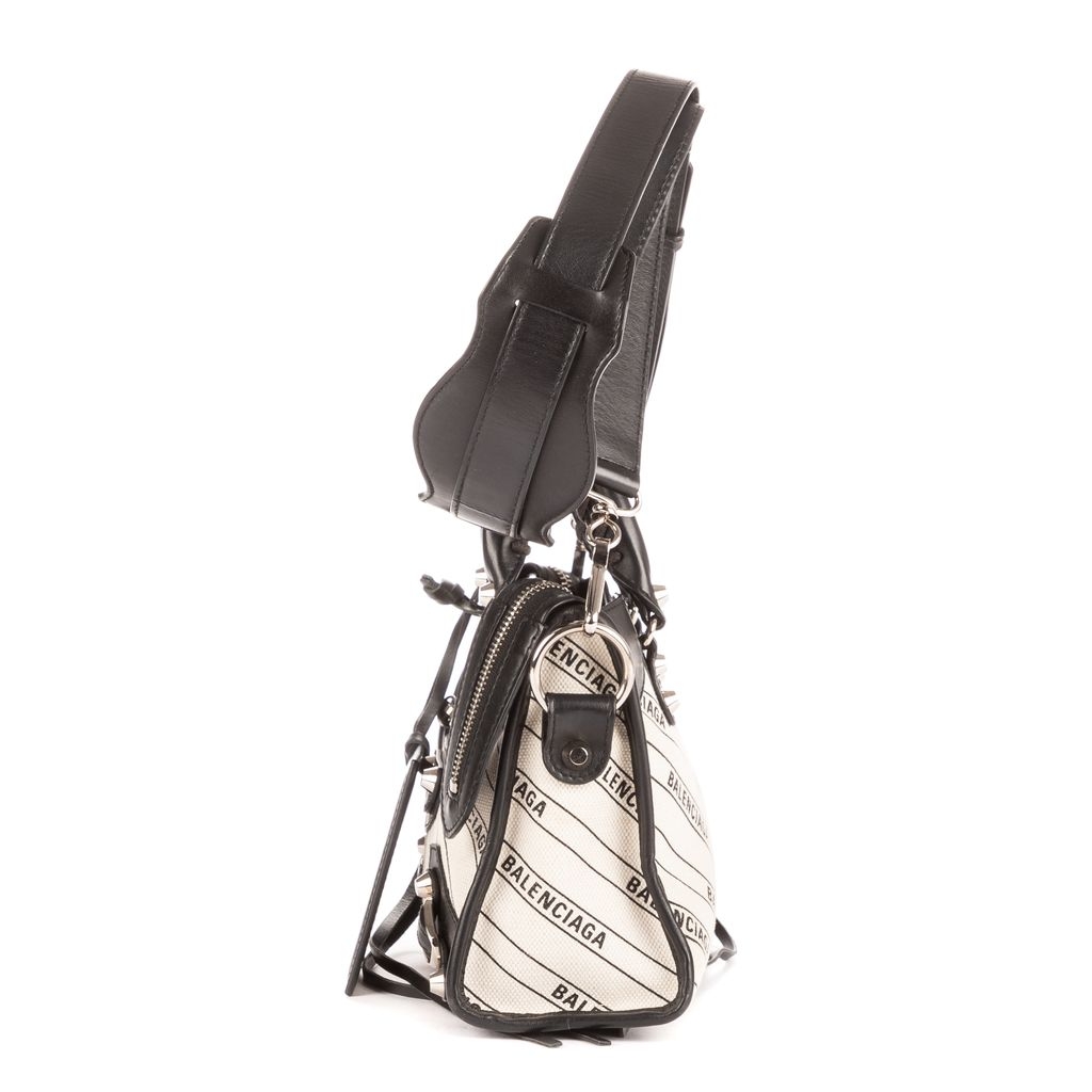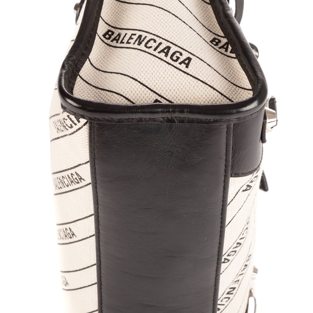 A vintage Balenciaga black/beige canvas Mini Classic City bag with a certificate of authenticity, Approximately 16cm height, 23cm width.