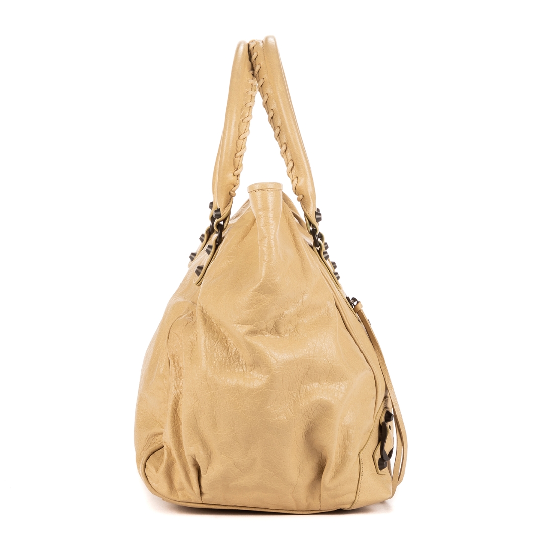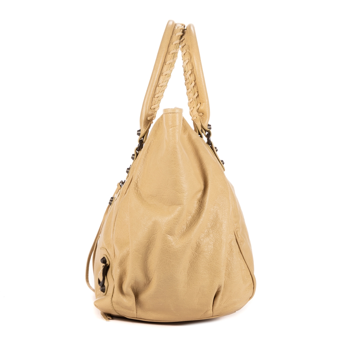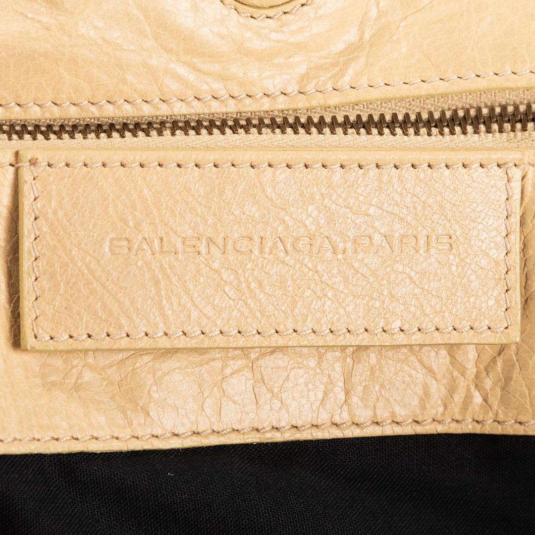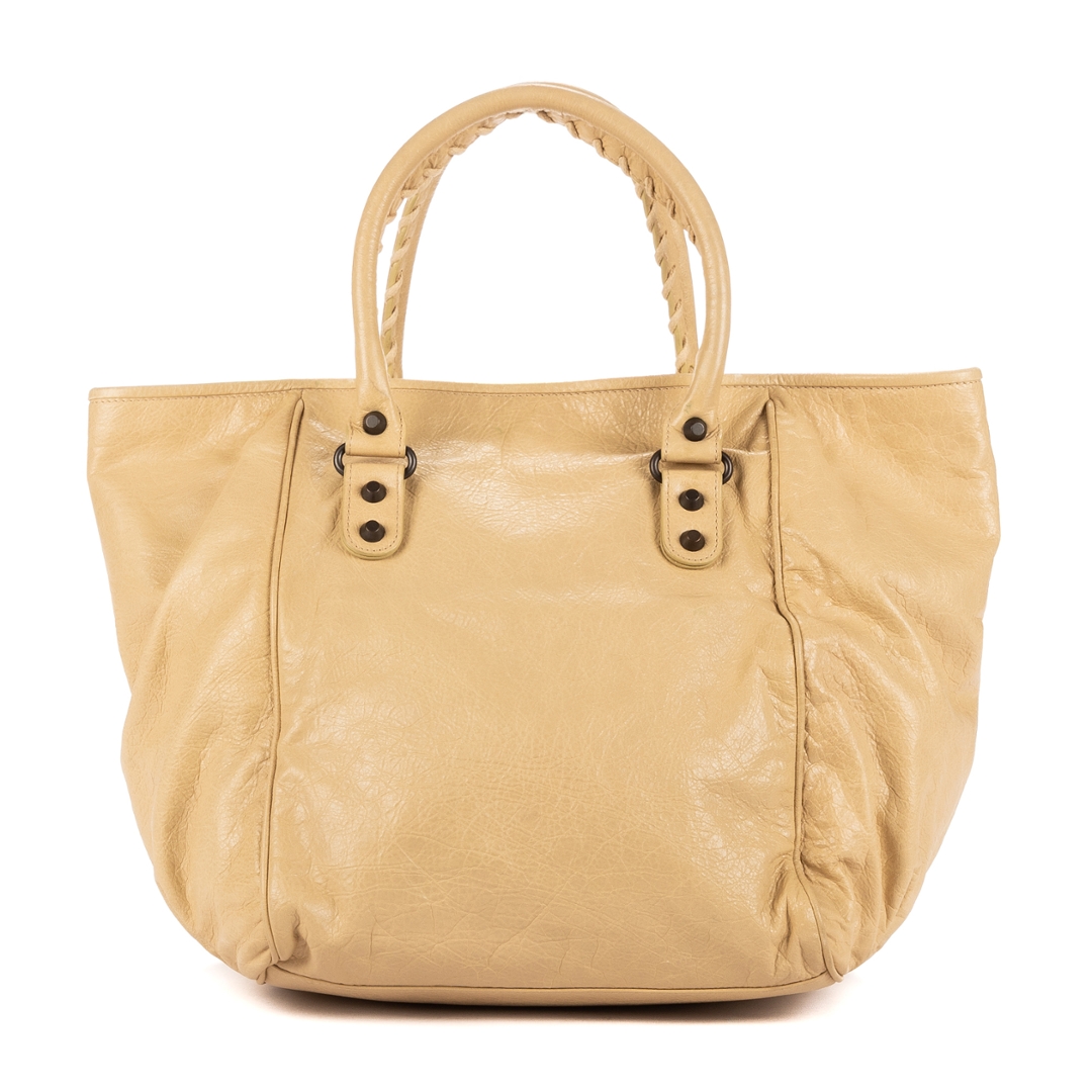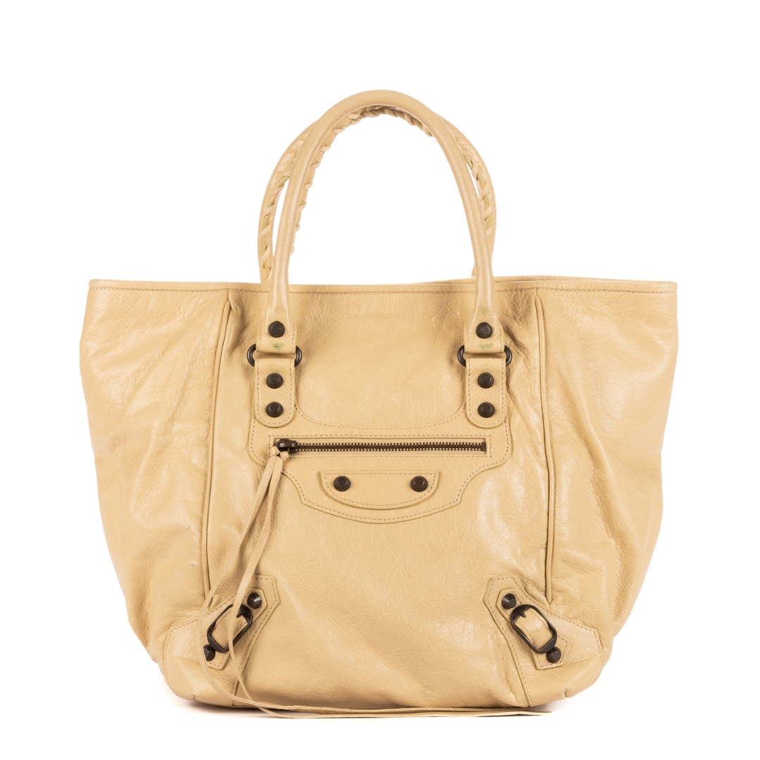 A vintage Balenciaga beige calf leather Small Classic Sunday Tote bag with a certificate of authenticity, Approximately 28cm height, 25cm width.